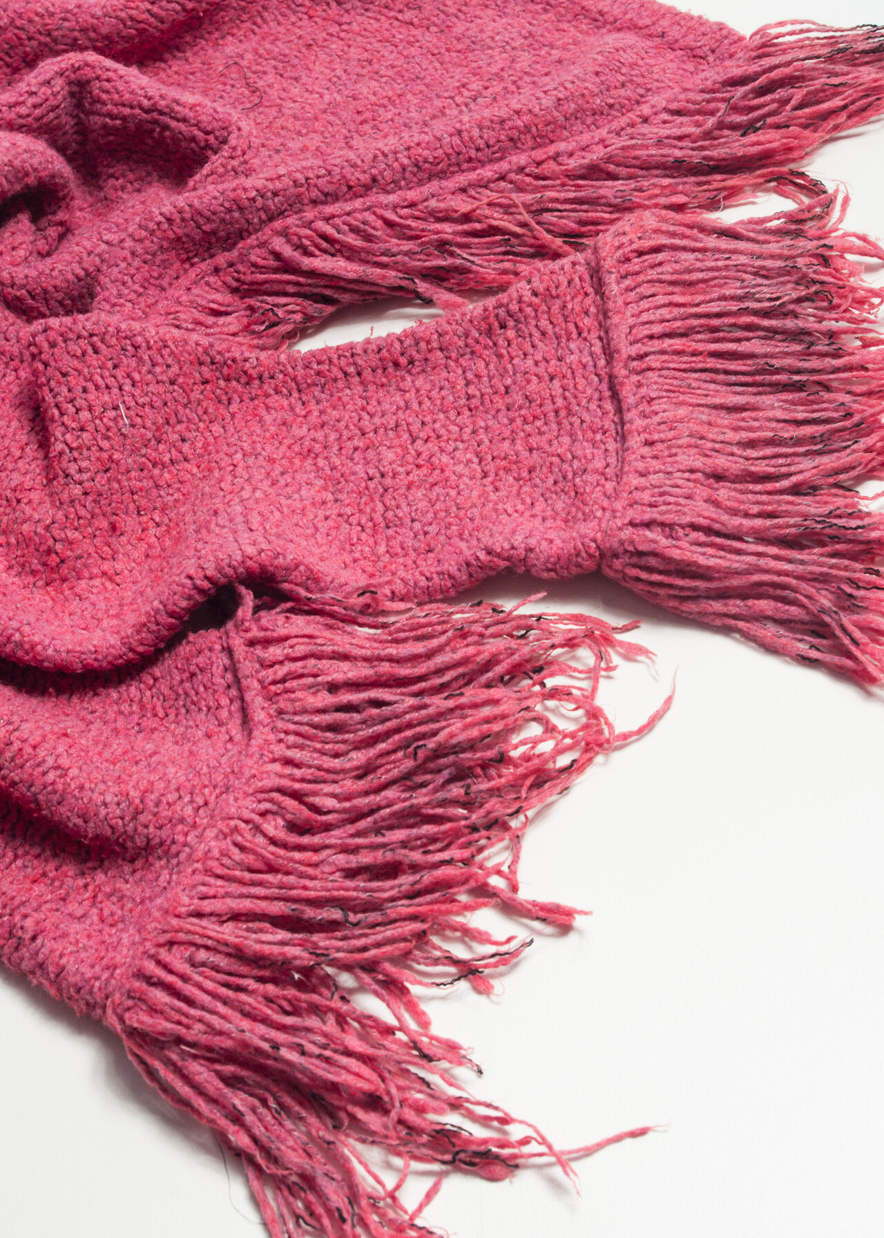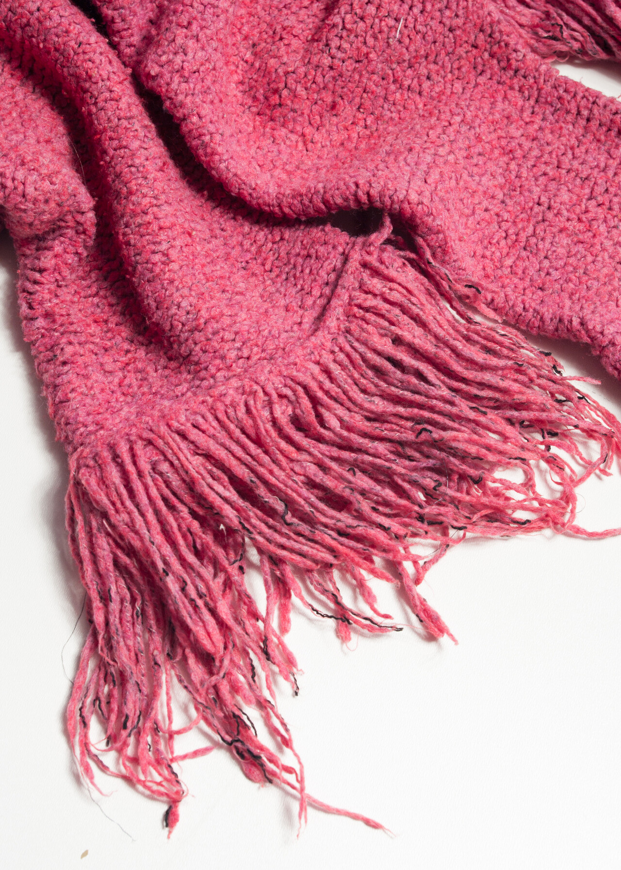 90s vintage frilly cardigan – because this pink wool blend coat with a fringe hem is the Phoebe Buffay-approved sweater you never knew you needed!