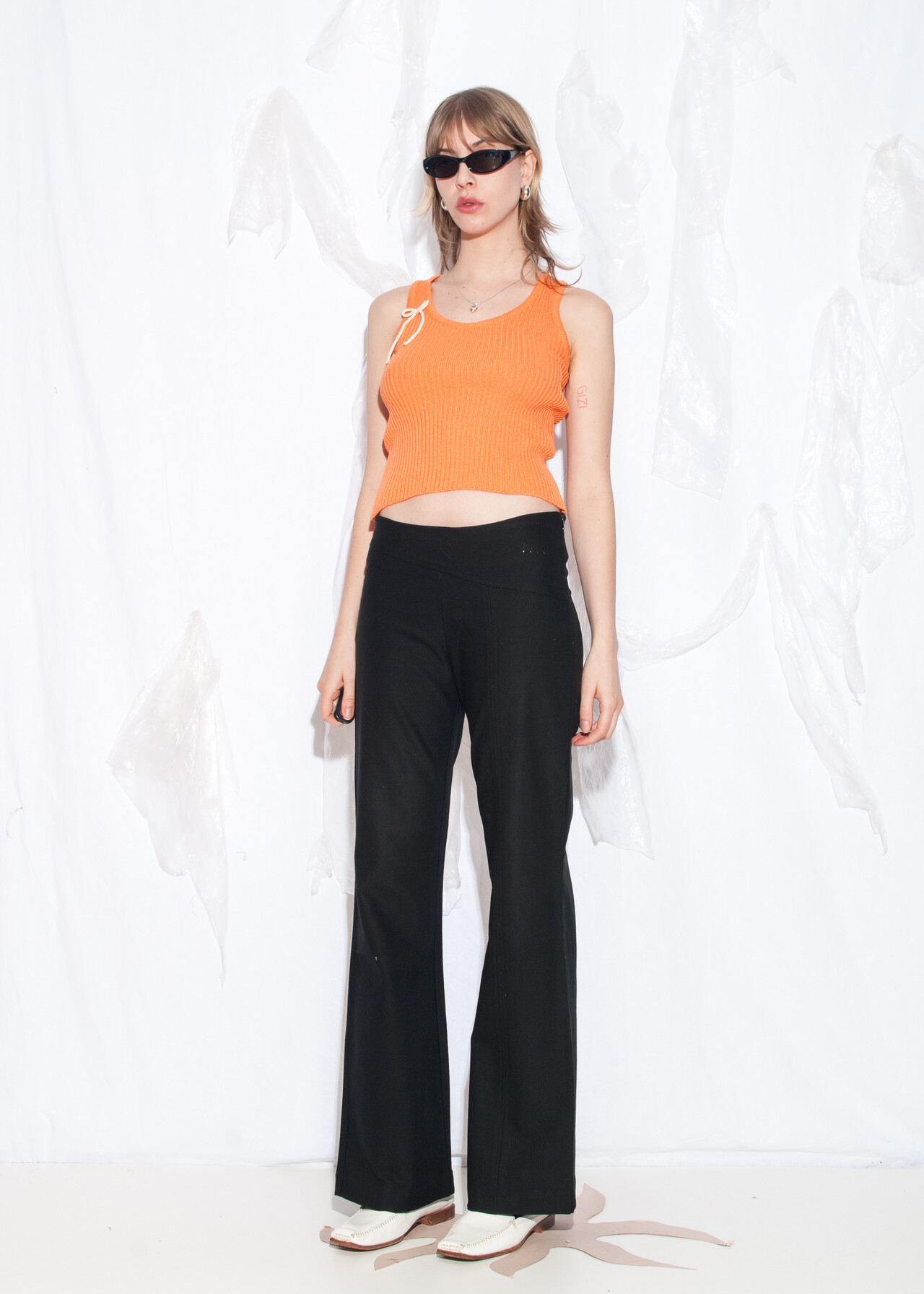 This 90s vintage knitted crop top is like the ultimate ribbed orange delight, complete with a bow that’s sassier than your favorite 90s sitcom catchphrase.