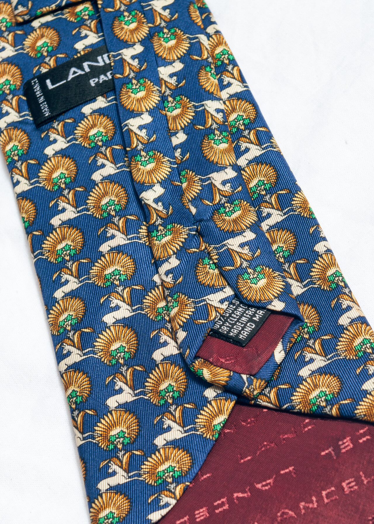 Vintage 90s Lancel Paris Silk Tie in Blue