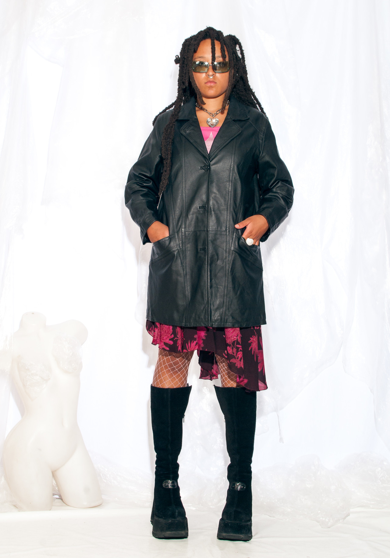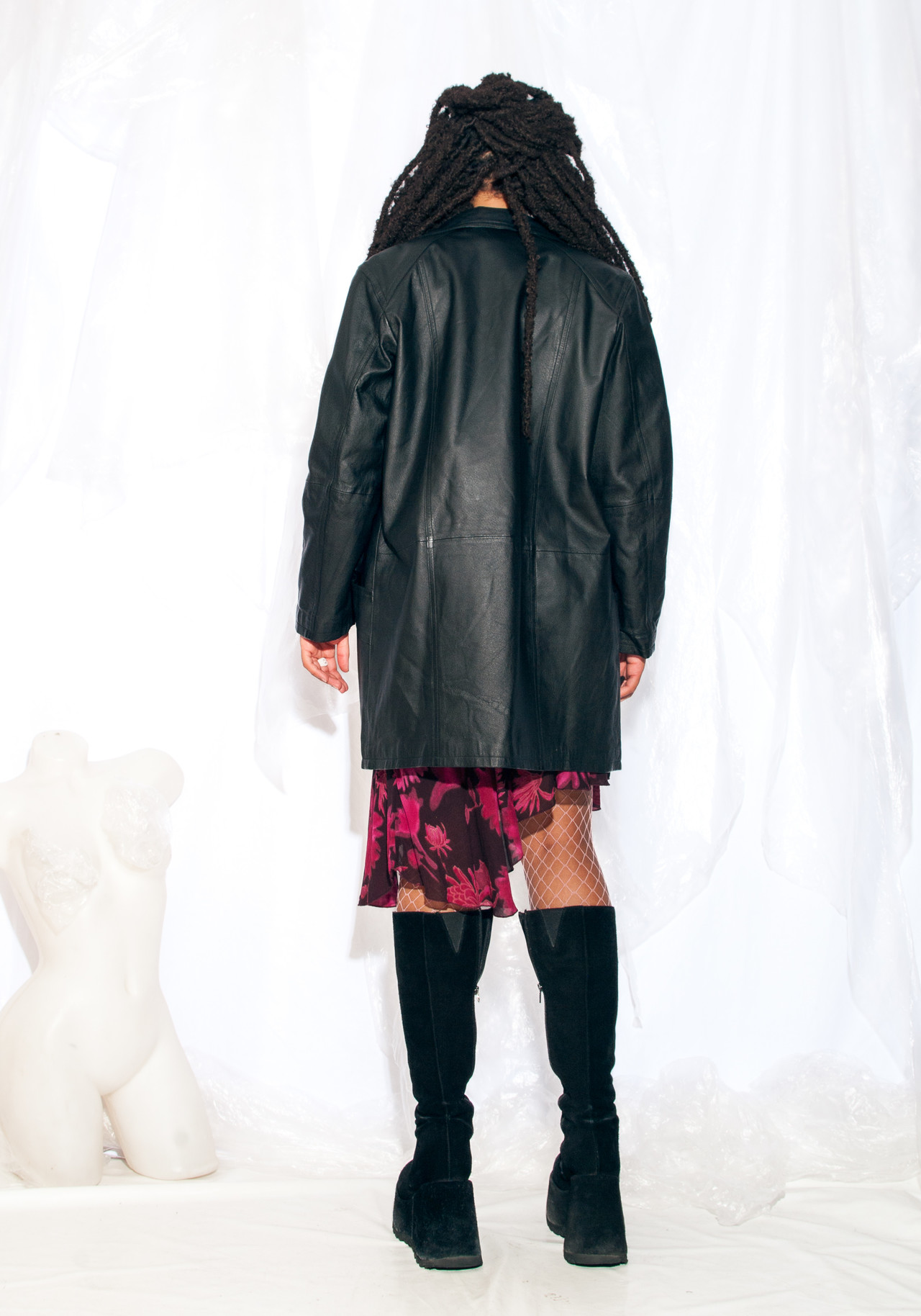 This vintage leather coat is the cool tardis for your closet. Transport yourself back to the 90s in this sleek black style that’s bursting with hidden inner pockets.