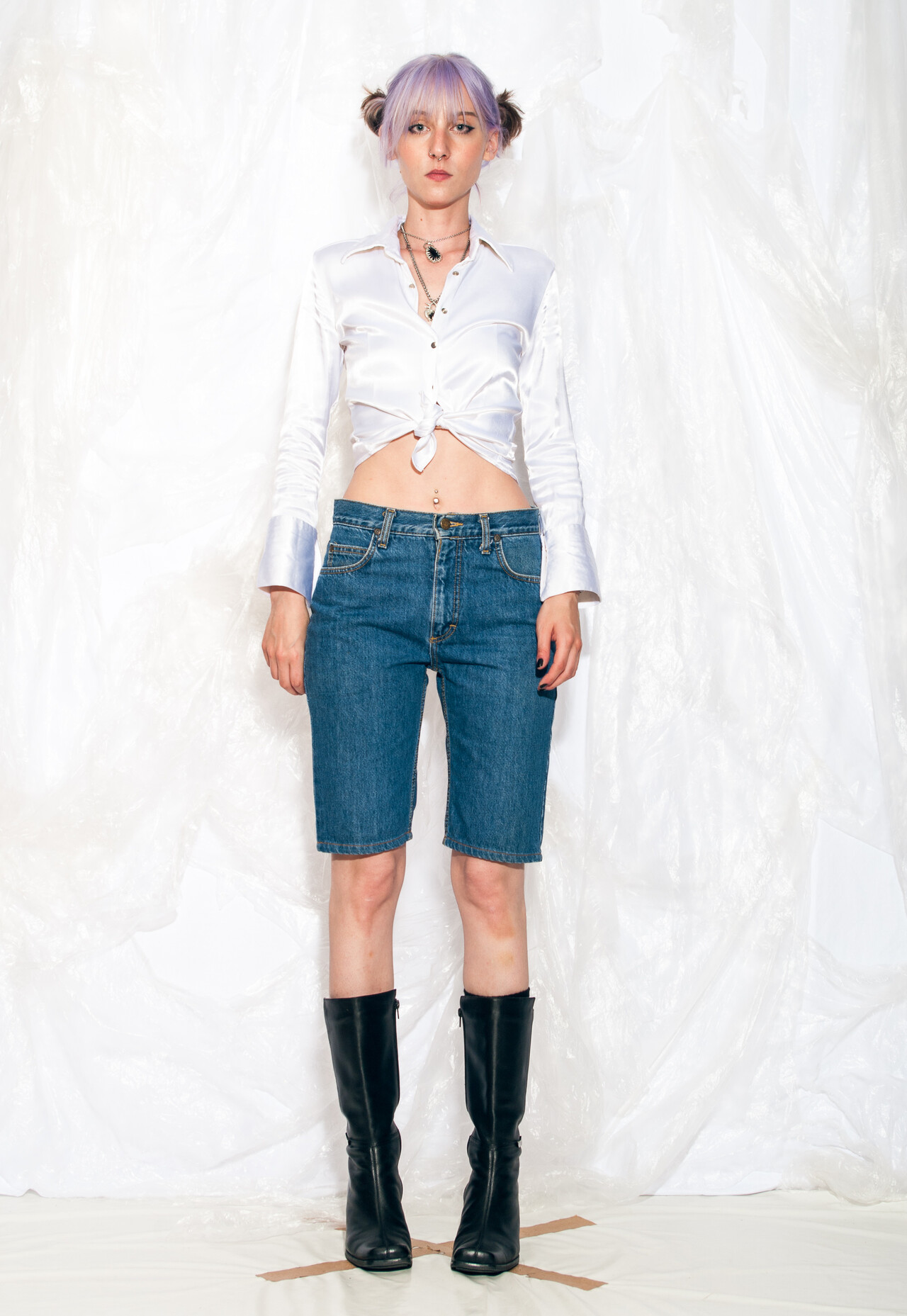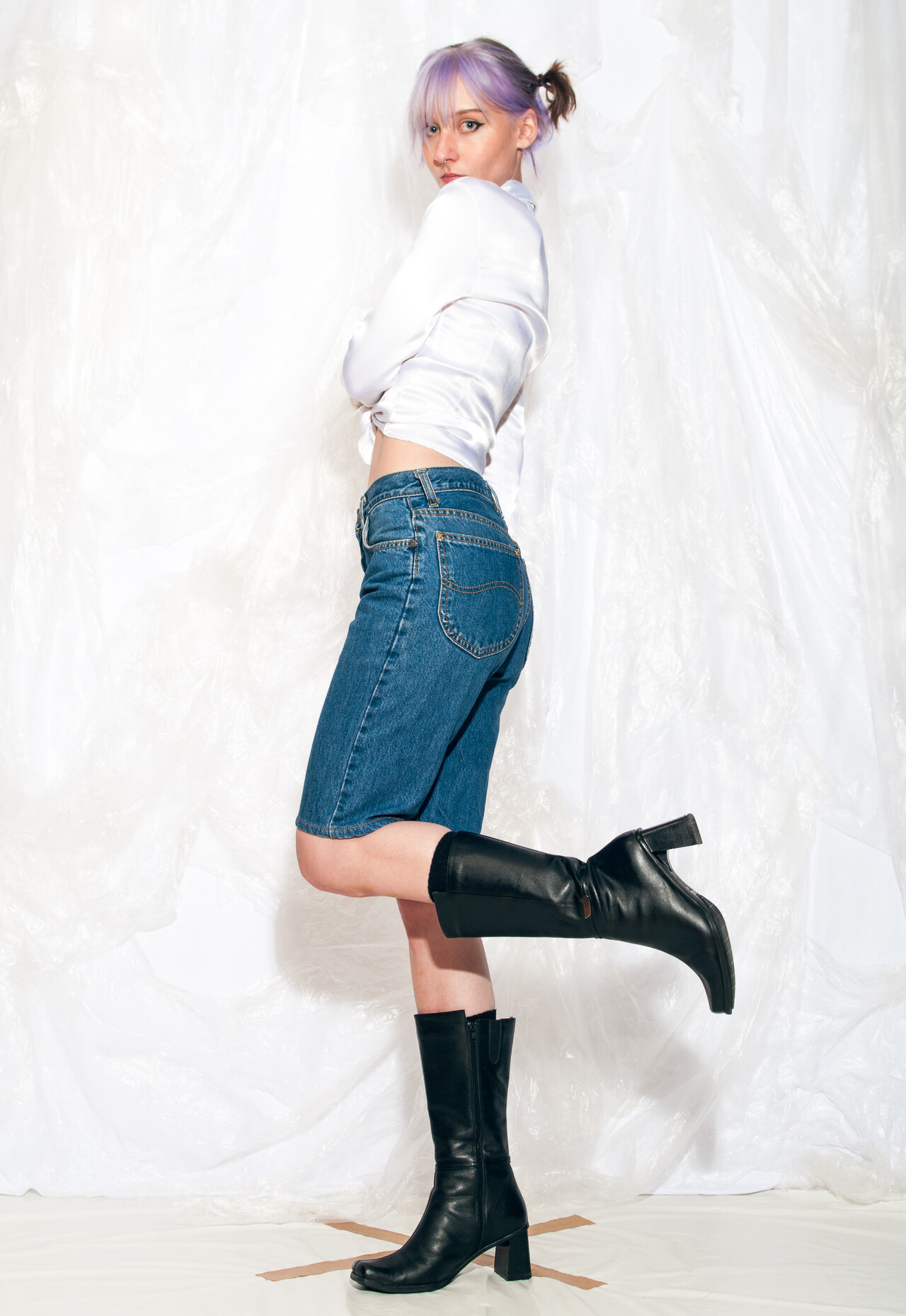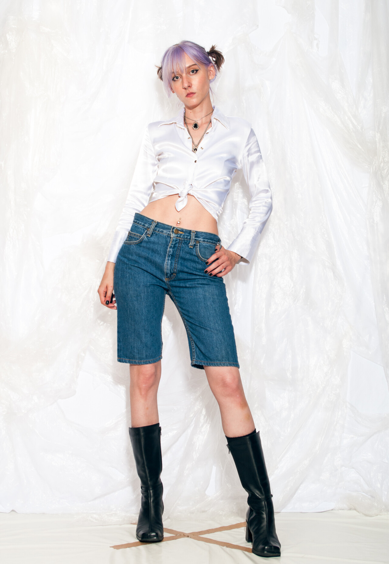 90s vintage denim shorts by Lee – the ultimate blue jorts that scream high-waist happiness from the era when your biggest worry was choosing between a Tamagotchi and a Furby.