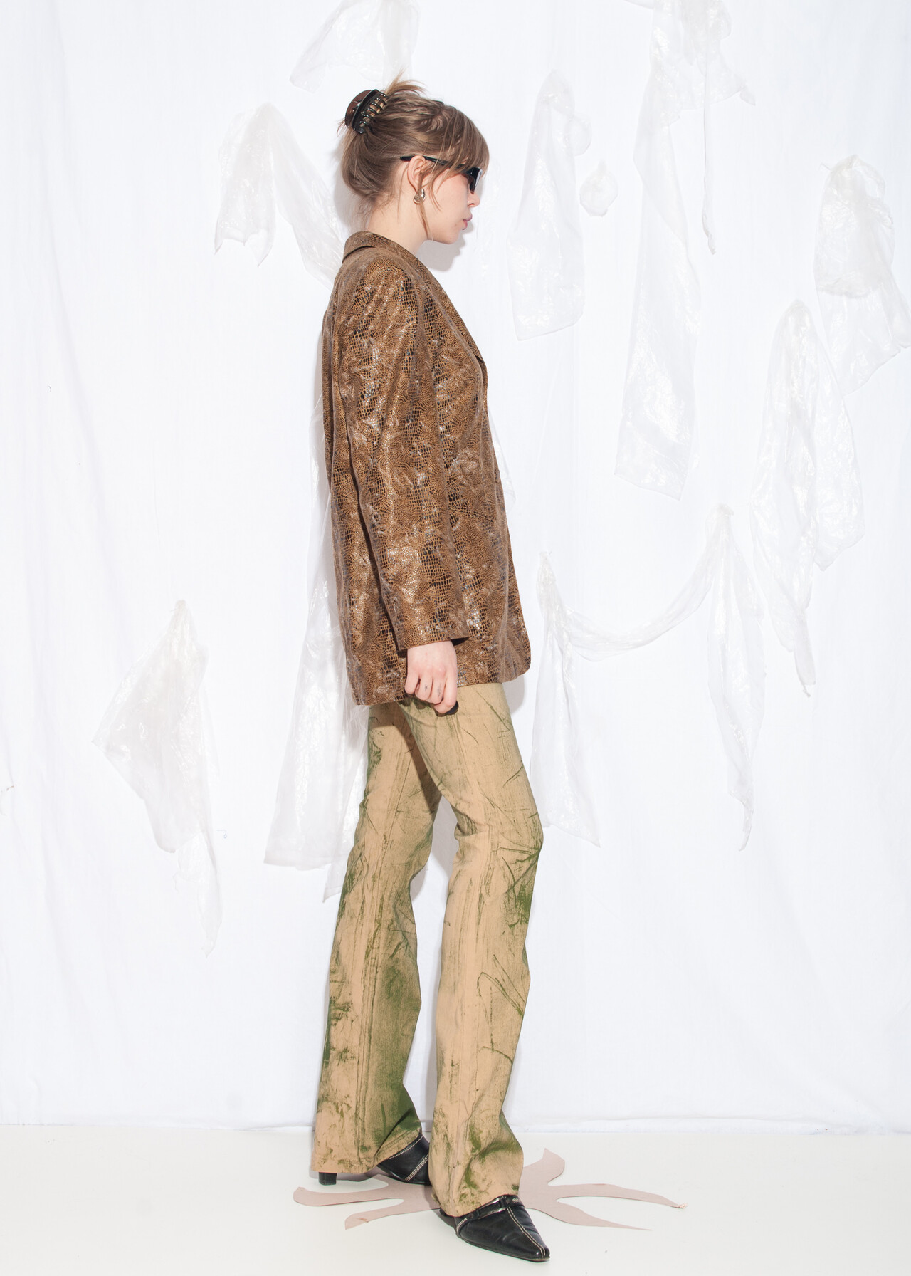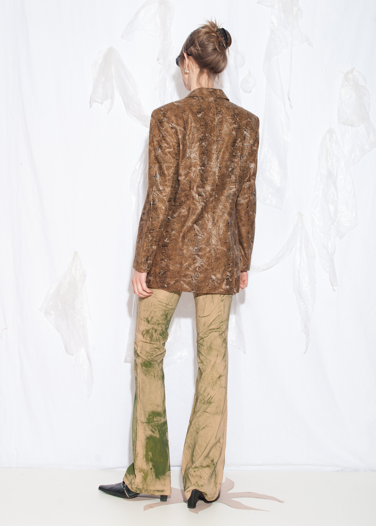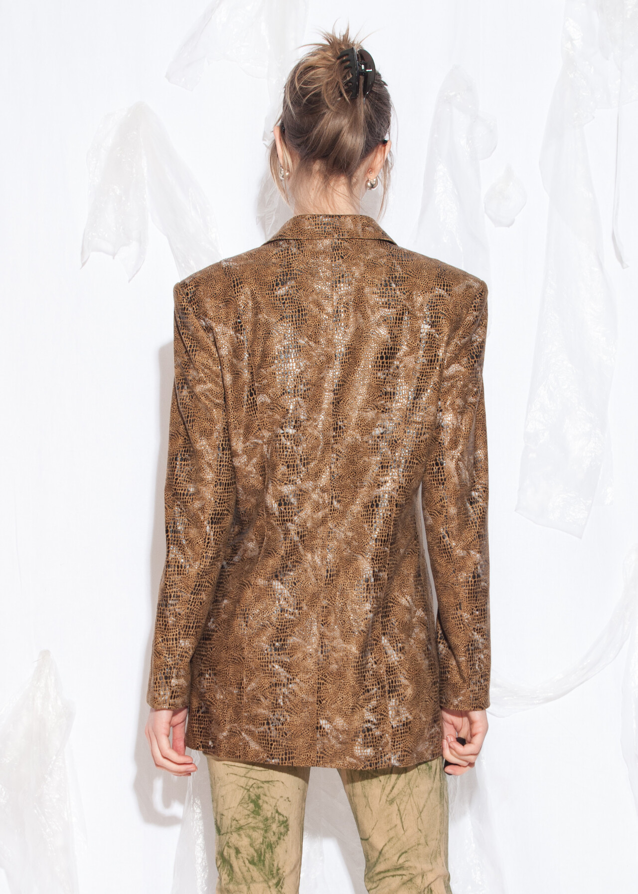 Tags: 90s vintage style, oversized blazer, snake pattern