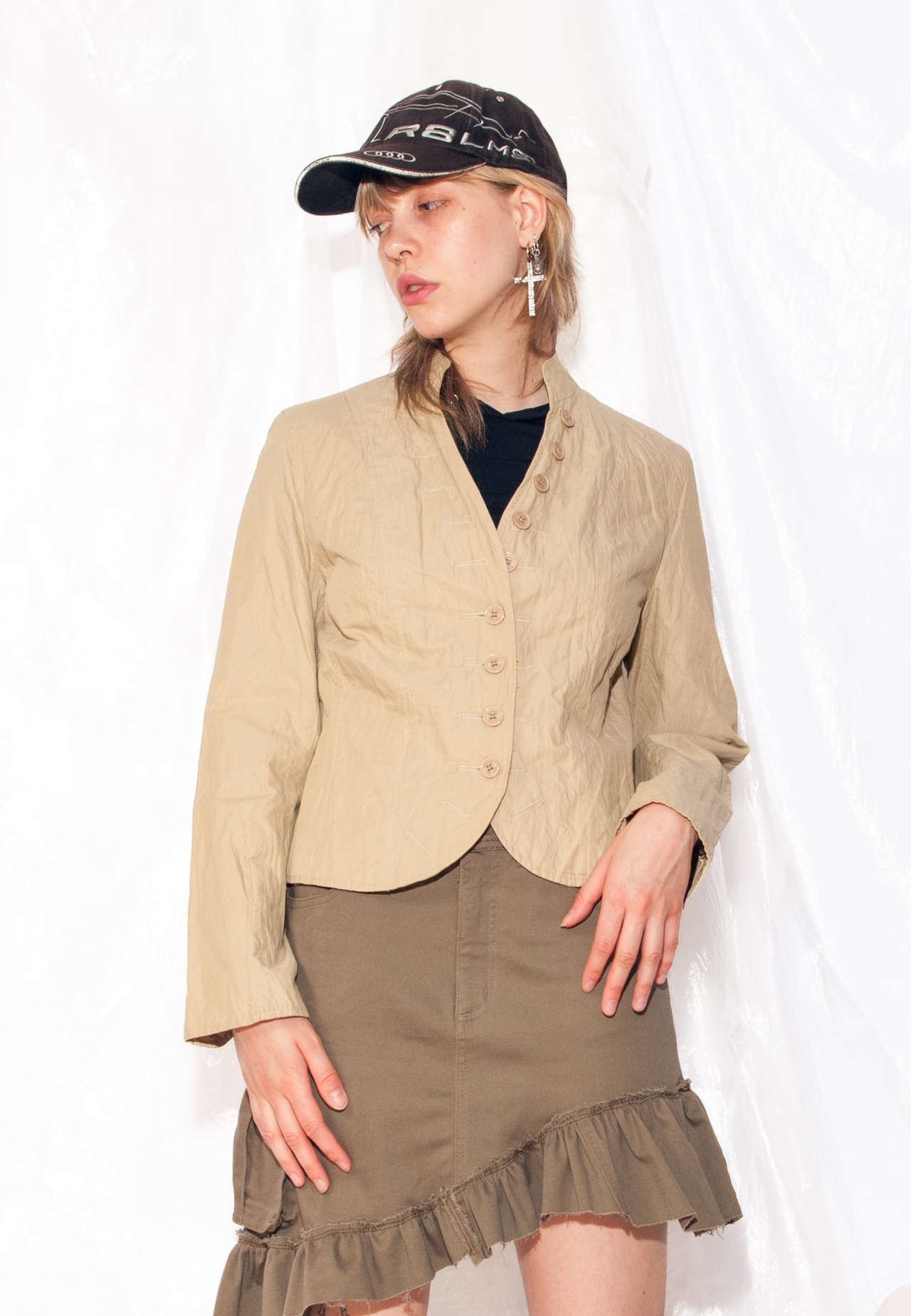Vintage Blazer Y2K Buttoned Fitted Jacket in Beige