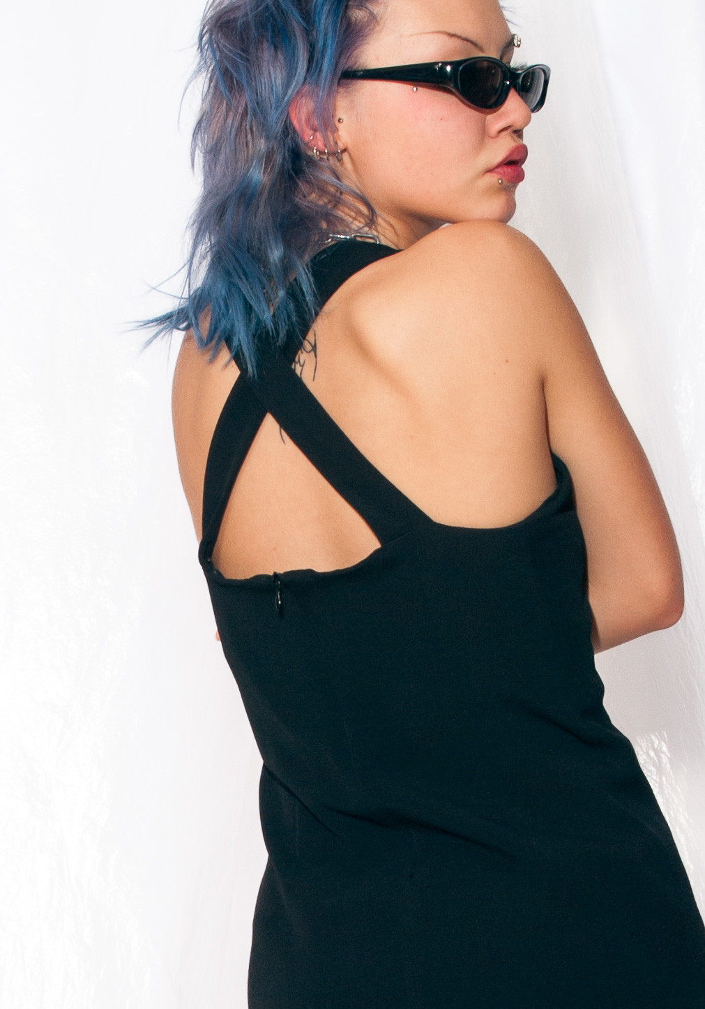 Vintage party dress 90s open back silver evening mini