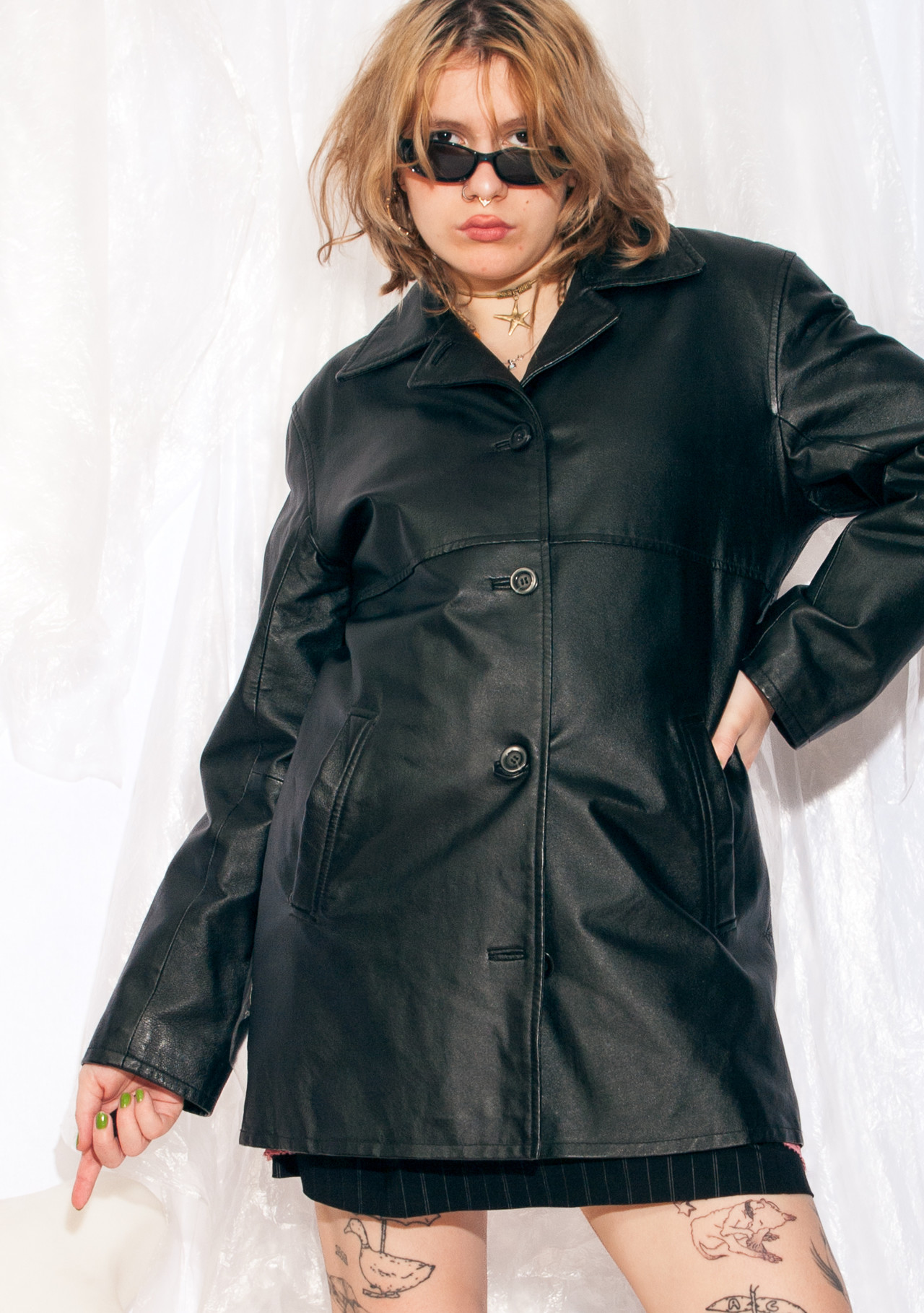 Vintage Leather Jacket 90s Matrix Raver Coat in Black