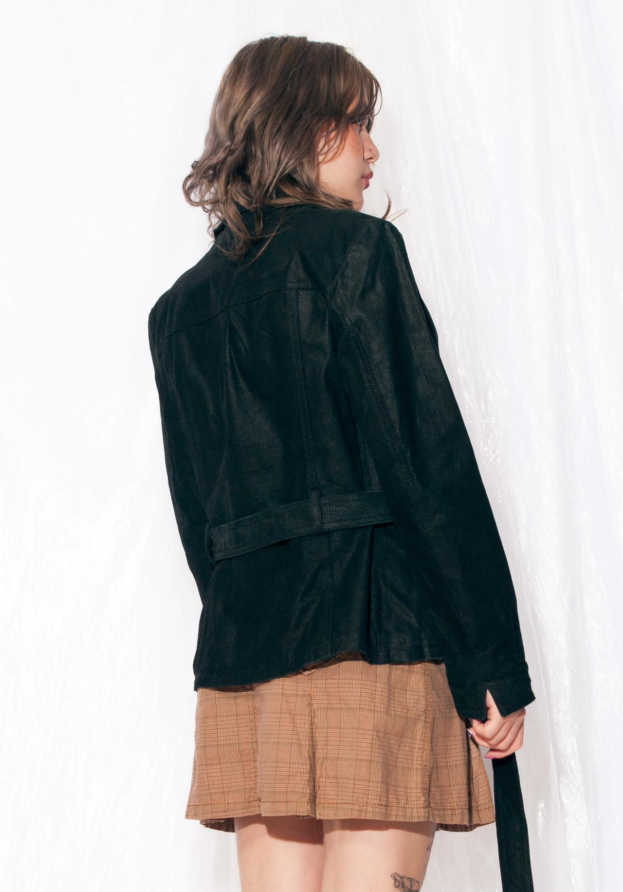 Vintage Leather Jacket 90s Y2K Suede Blazer Coat in Black