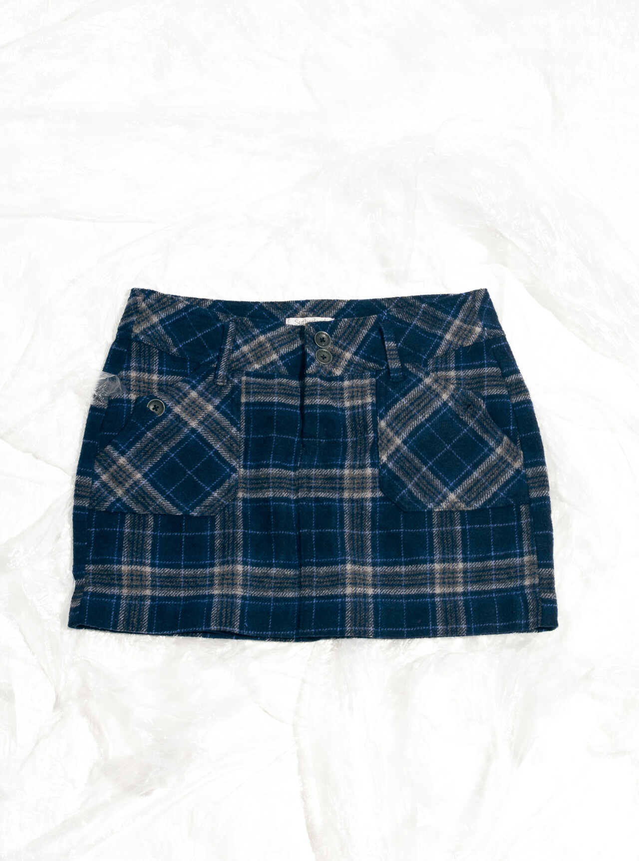 Vintage Preppy Skirt Y2K Plaid Low Rise Mini in Blue