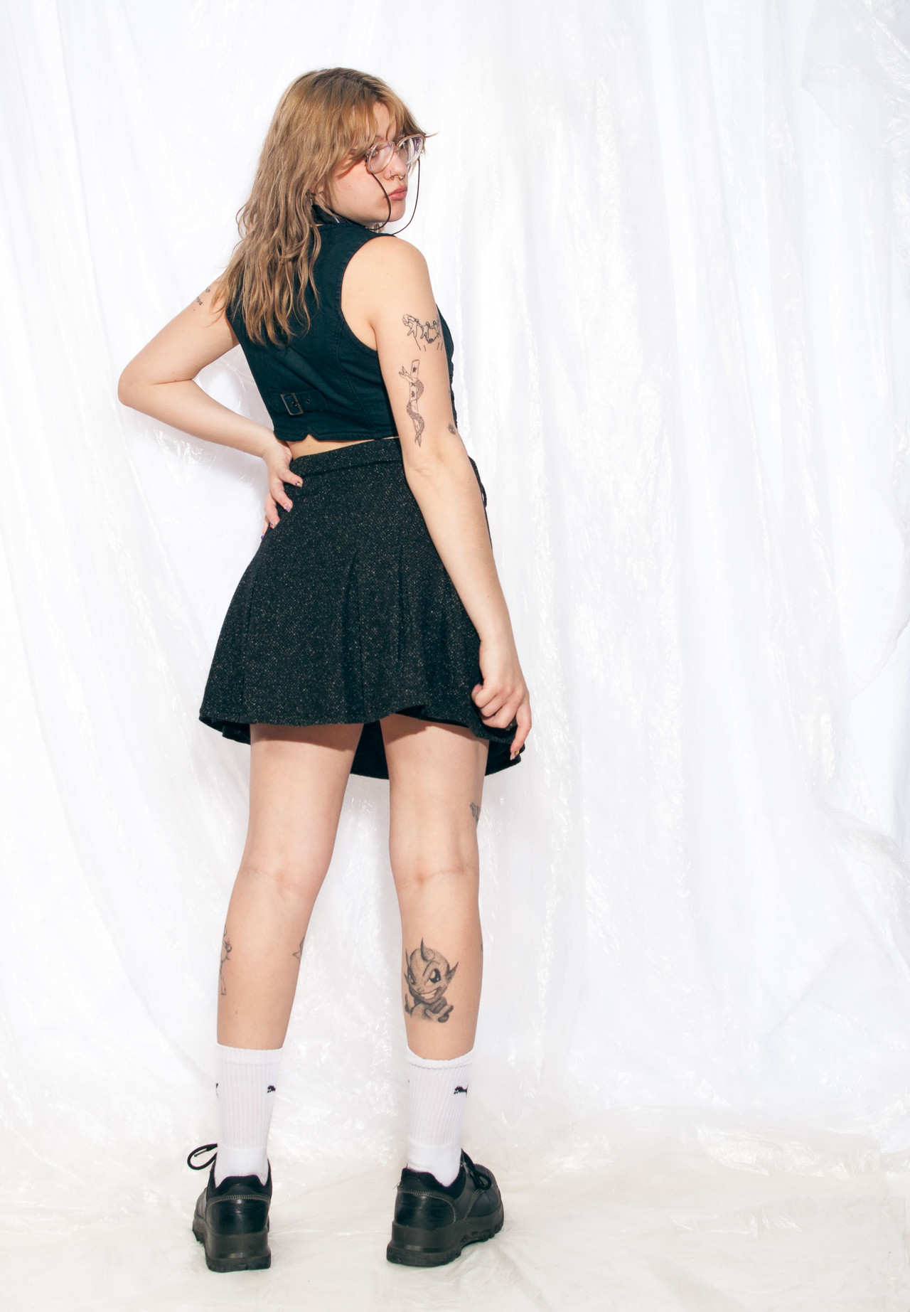 This Y2K vintage skirt is like a time machine, transporting you back to when low-rise was all the rage and flip phones ruled. Bonus: it’s sustainable fashion, so you’re saving the earth and looking cute at the same time. Plus, it’s lined and made of natural wool-cotton blend fabric.