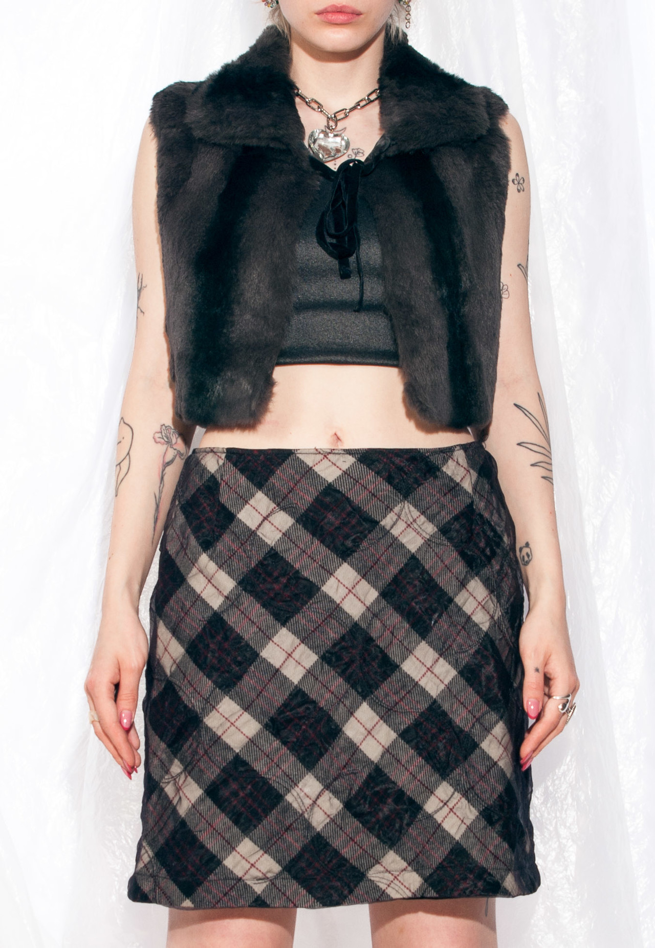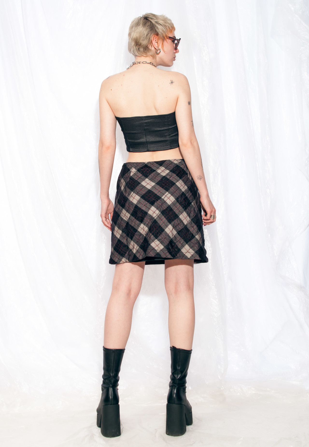 Vintage Skirt Y2K Preppy Plaid Mini in Brown Wool
