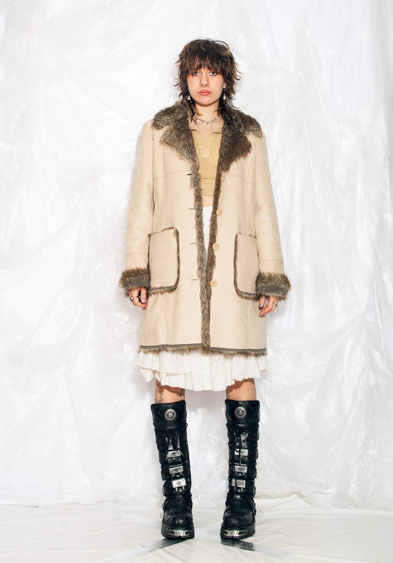 Vintage Y2K BIBA Faux Shearling Coat in Beige