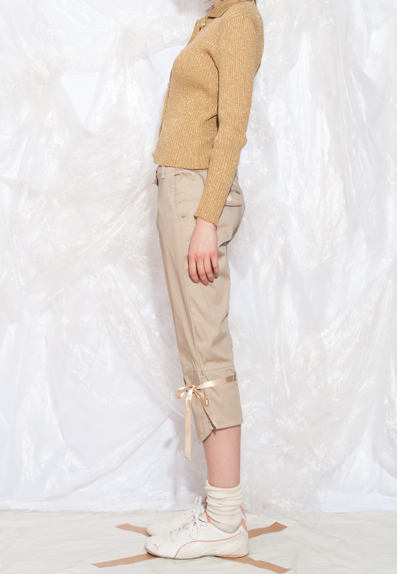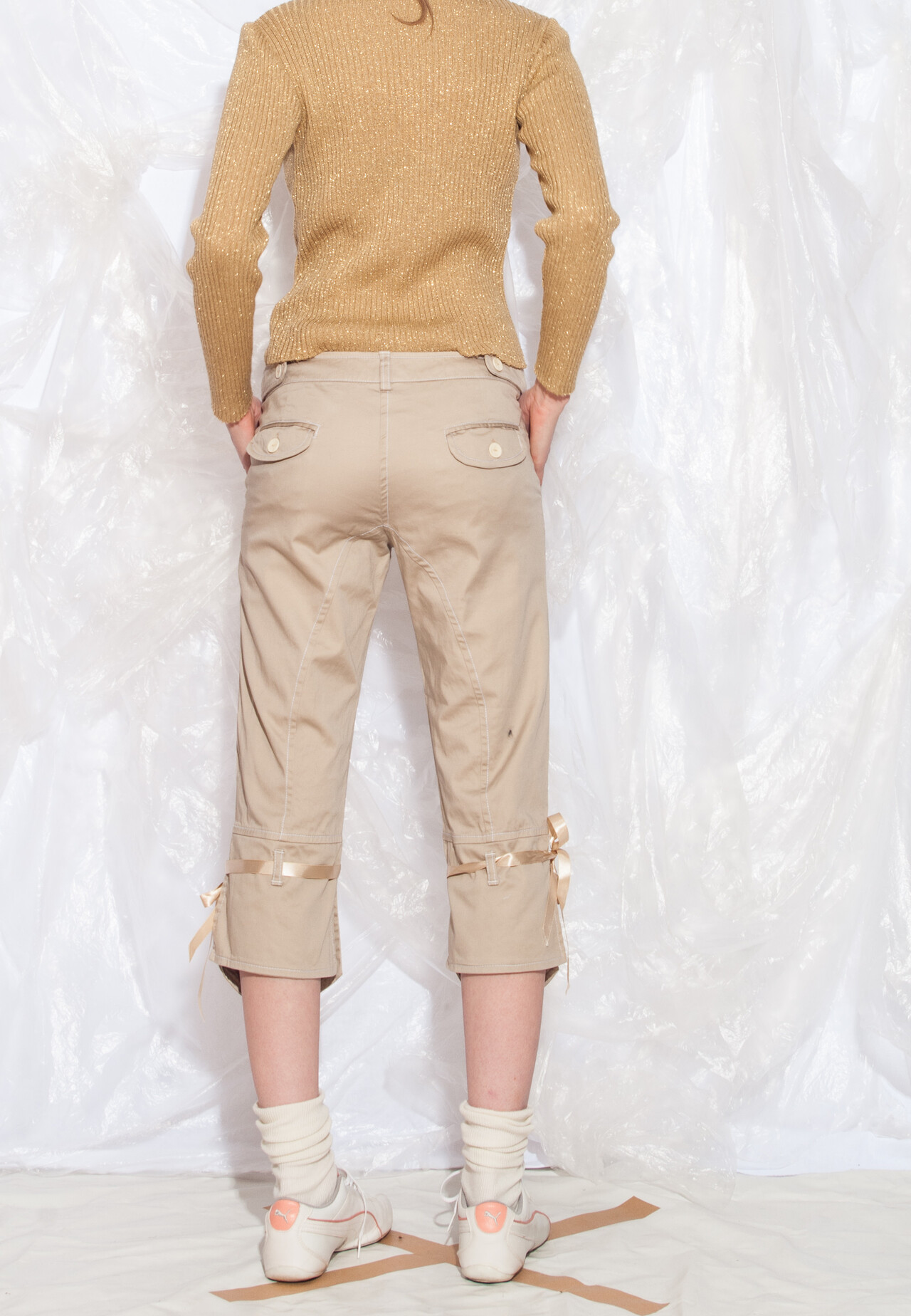 Vintage Y2K Capri Pants in Beige w Satin Bows