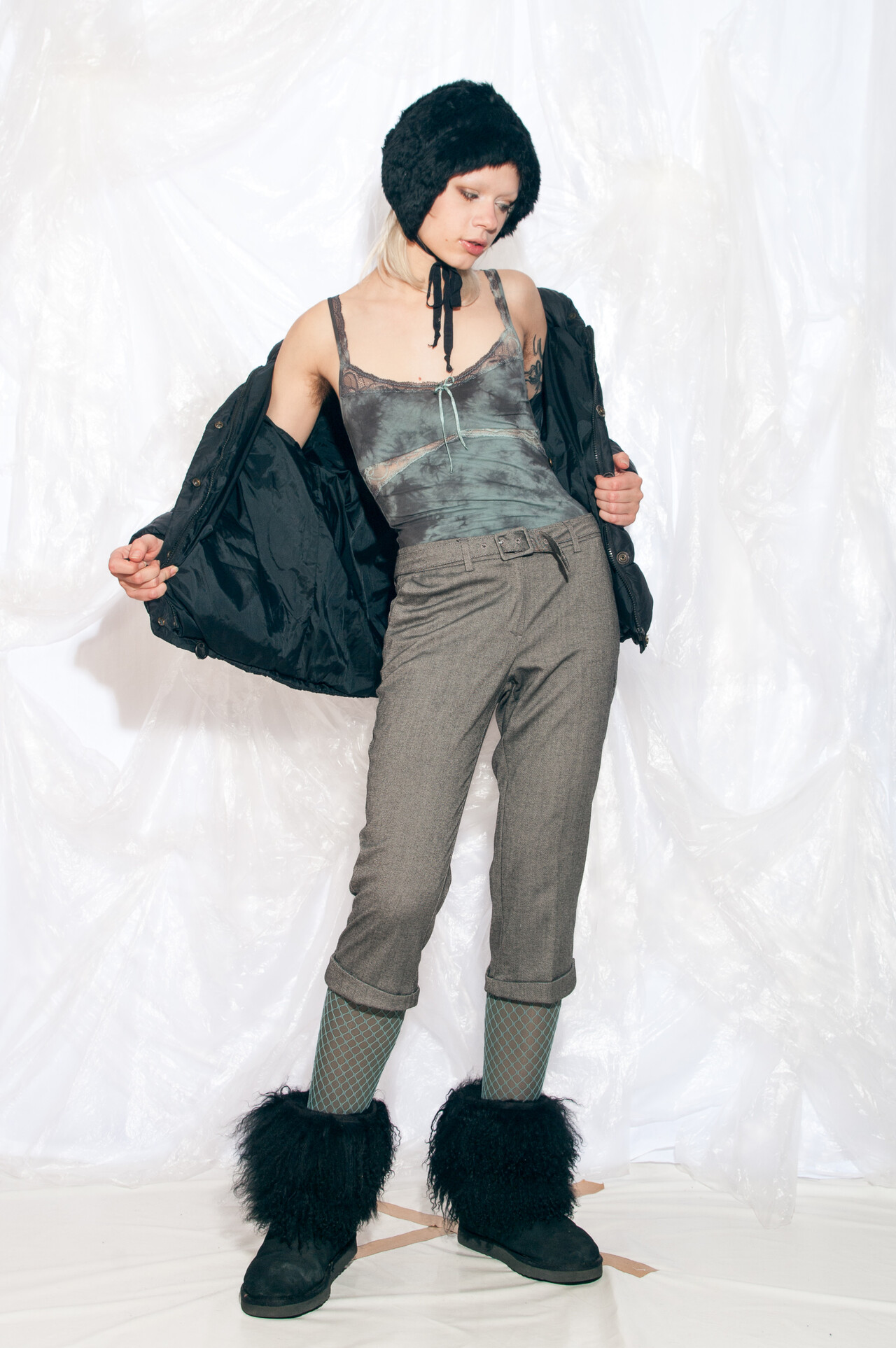– 63% polyester, 34% viscose, 3% elastane