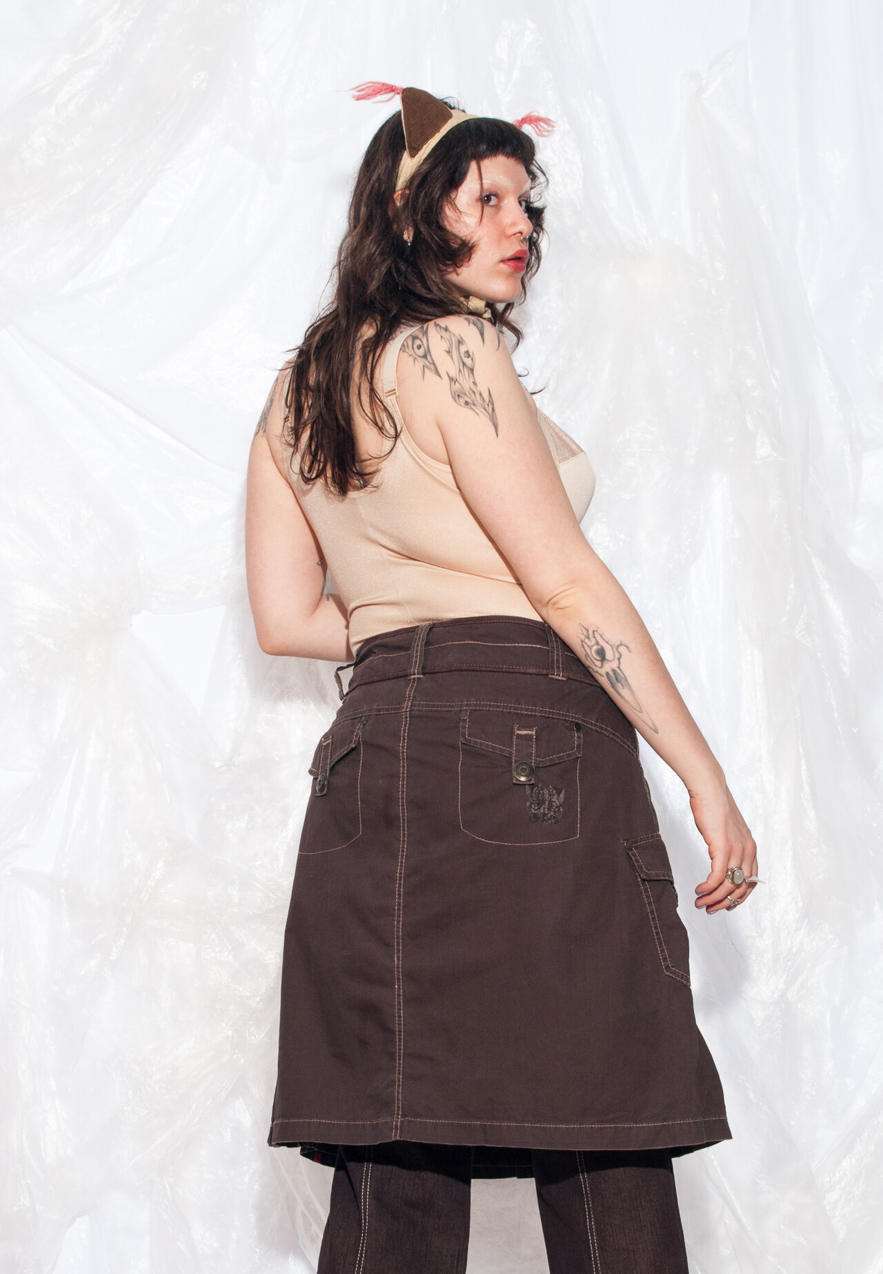Vintage Y2K Cargo Skirt in Brown Cotton