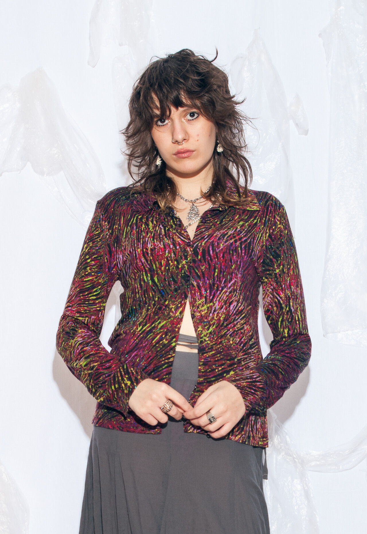 Tags: 2000s vintage style, chaos printed, fitted shirt