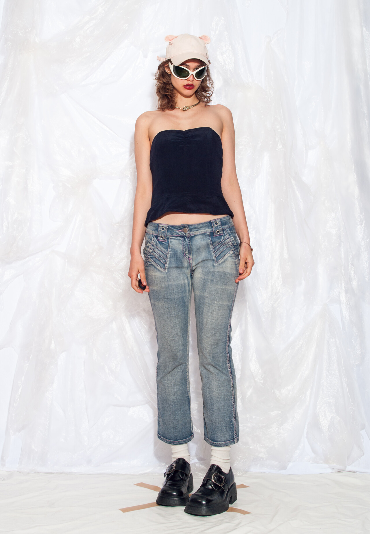 These Y2K vintage jeans are the perfect companion for when you feel like travelling back to a time when skinny brows were all the rage.