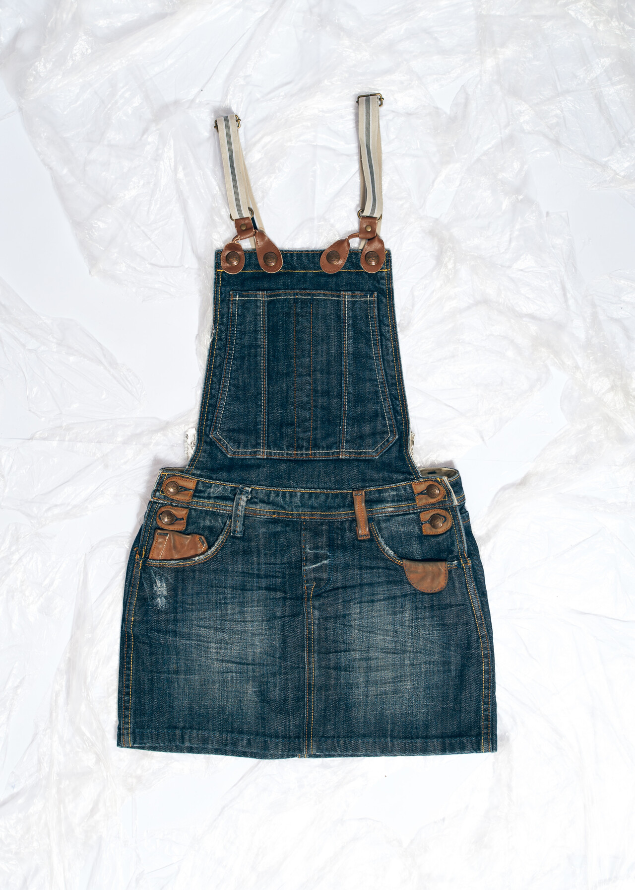This Y2K vintage denim dungaree mini skirt is the sassy sibling of your favorite overalls, ready to make you feel like you just stepped off an early 2000s reality show.