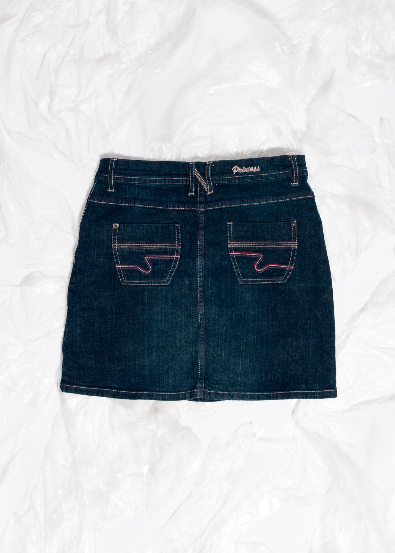 Y2K vintage denim skirt – a stonewashed masterpiece with a low-rise waist that’ll have you feeling like you’re strutting straight out of a 2000s music video.