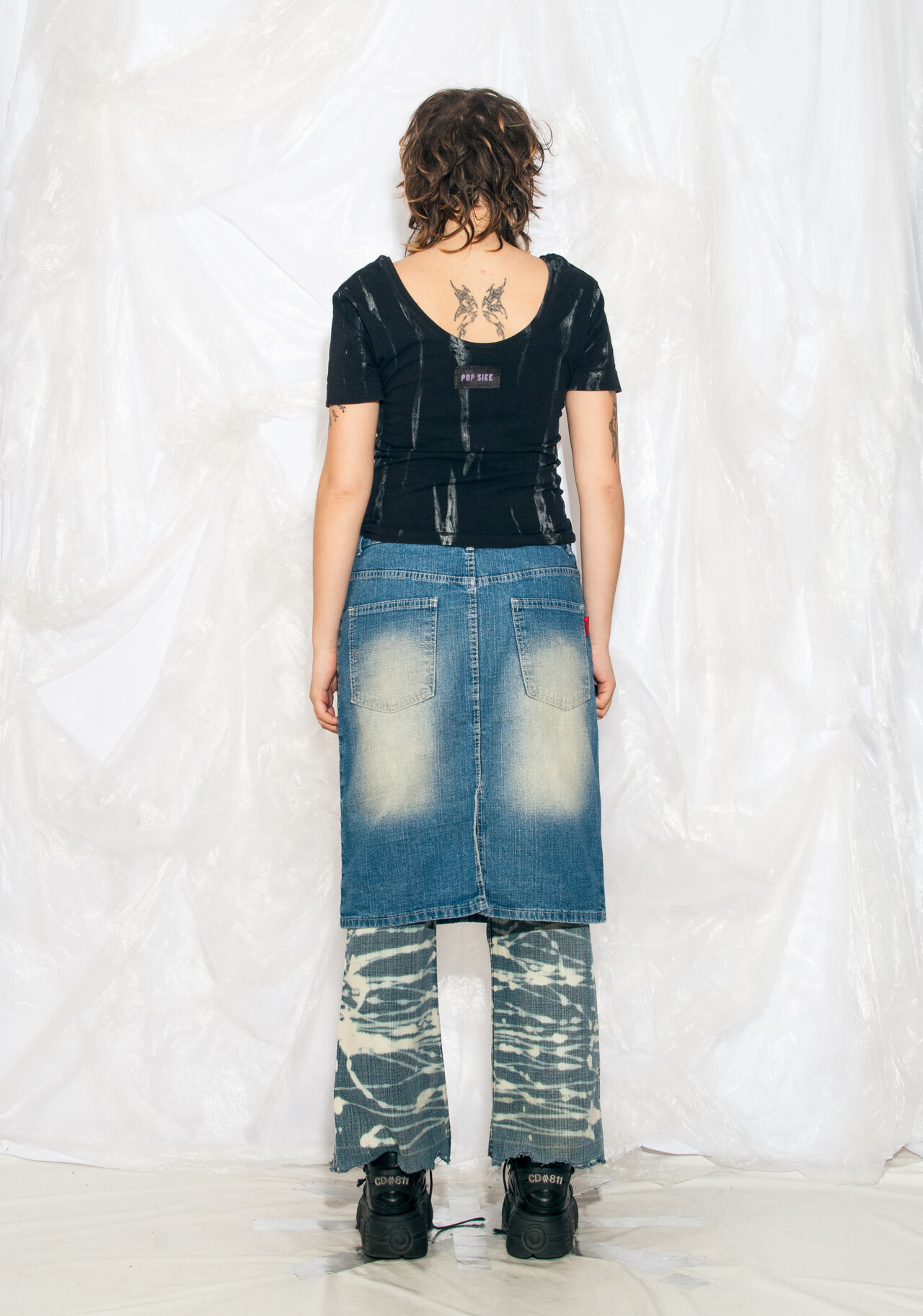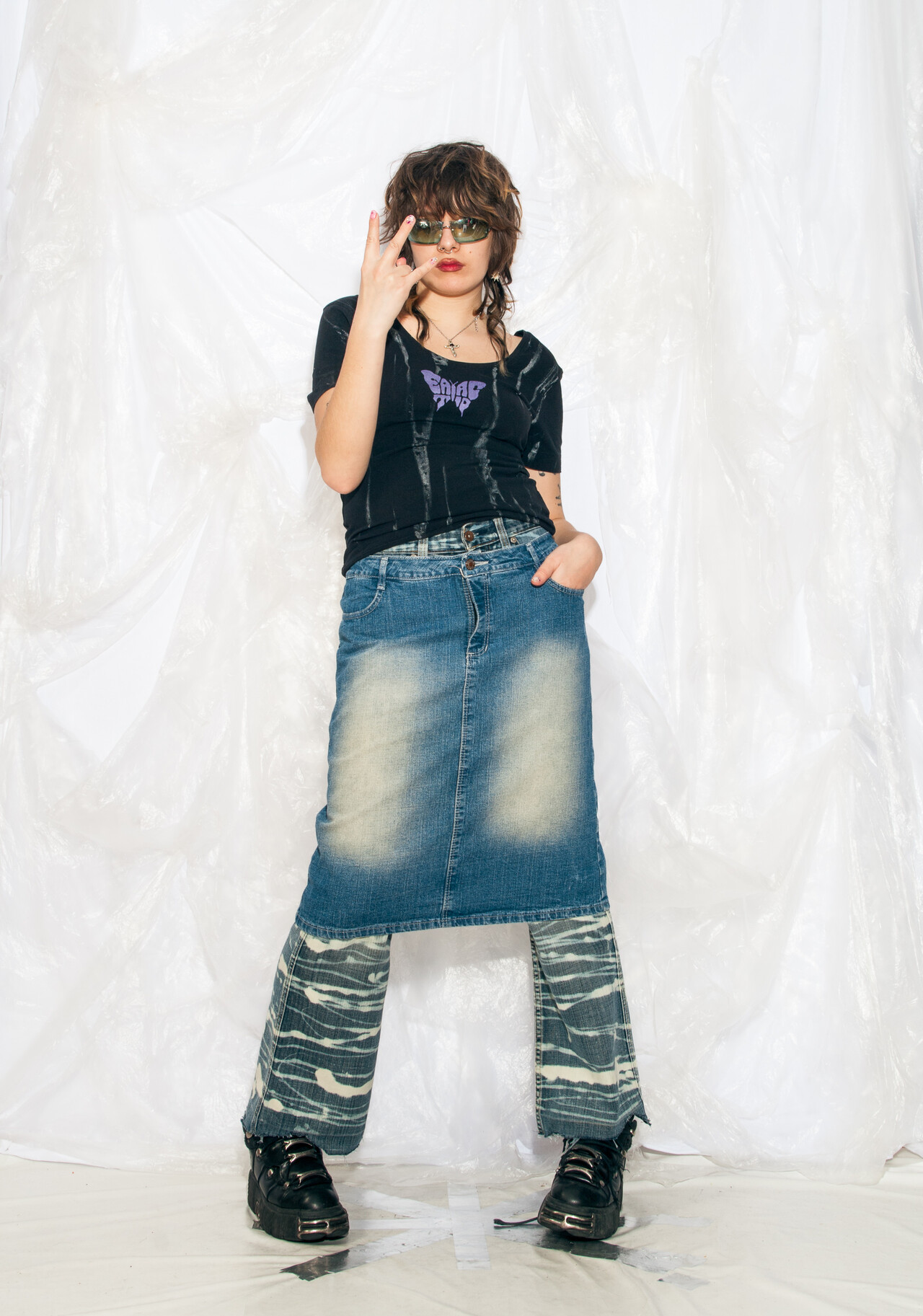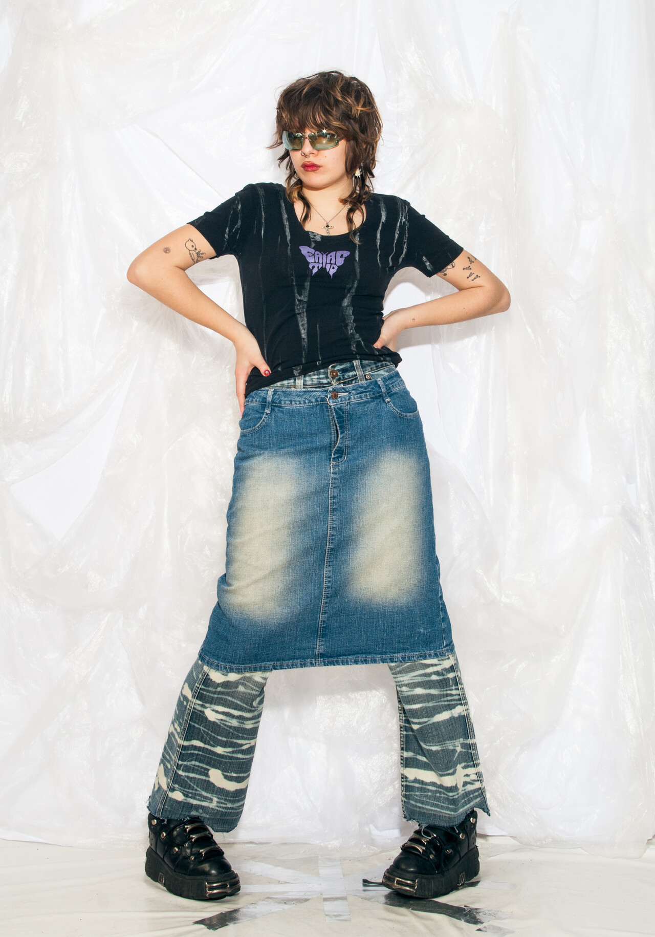 Vintage denim skirt 80s reworked cropped grunge skirt