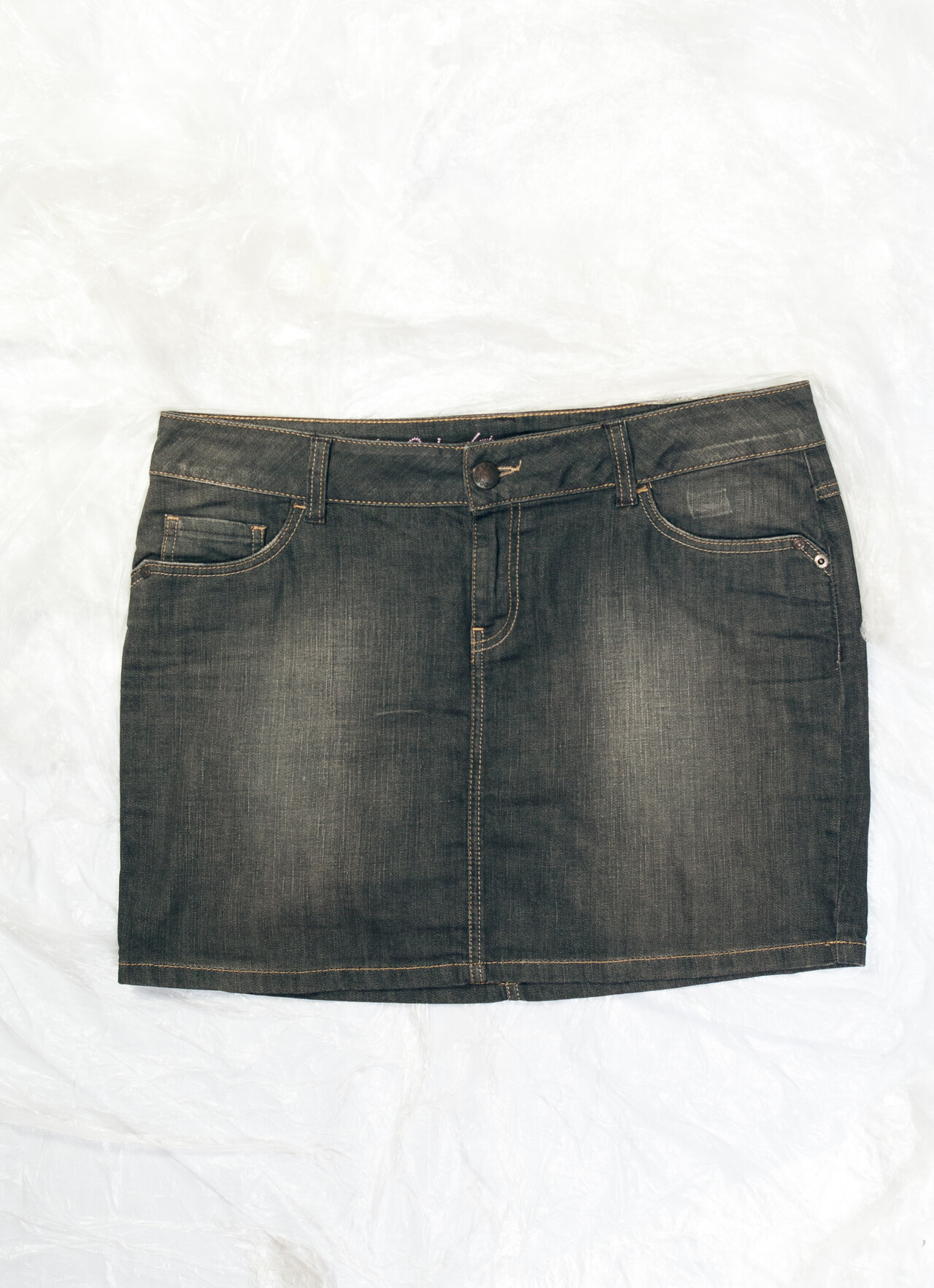 This Y2K vintage denim skirt is straight out of the early 2000s and the height of fashion.