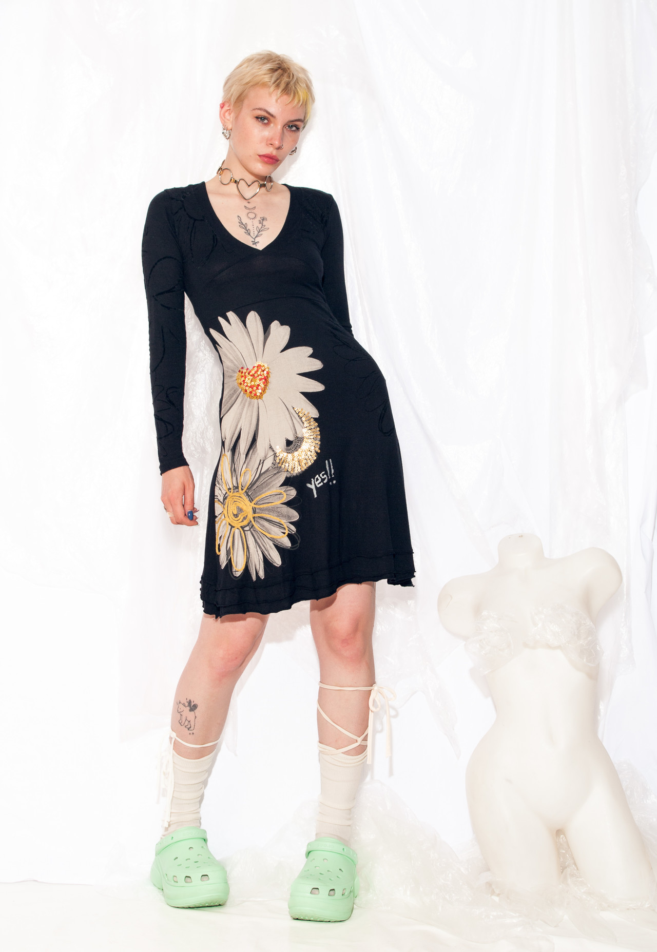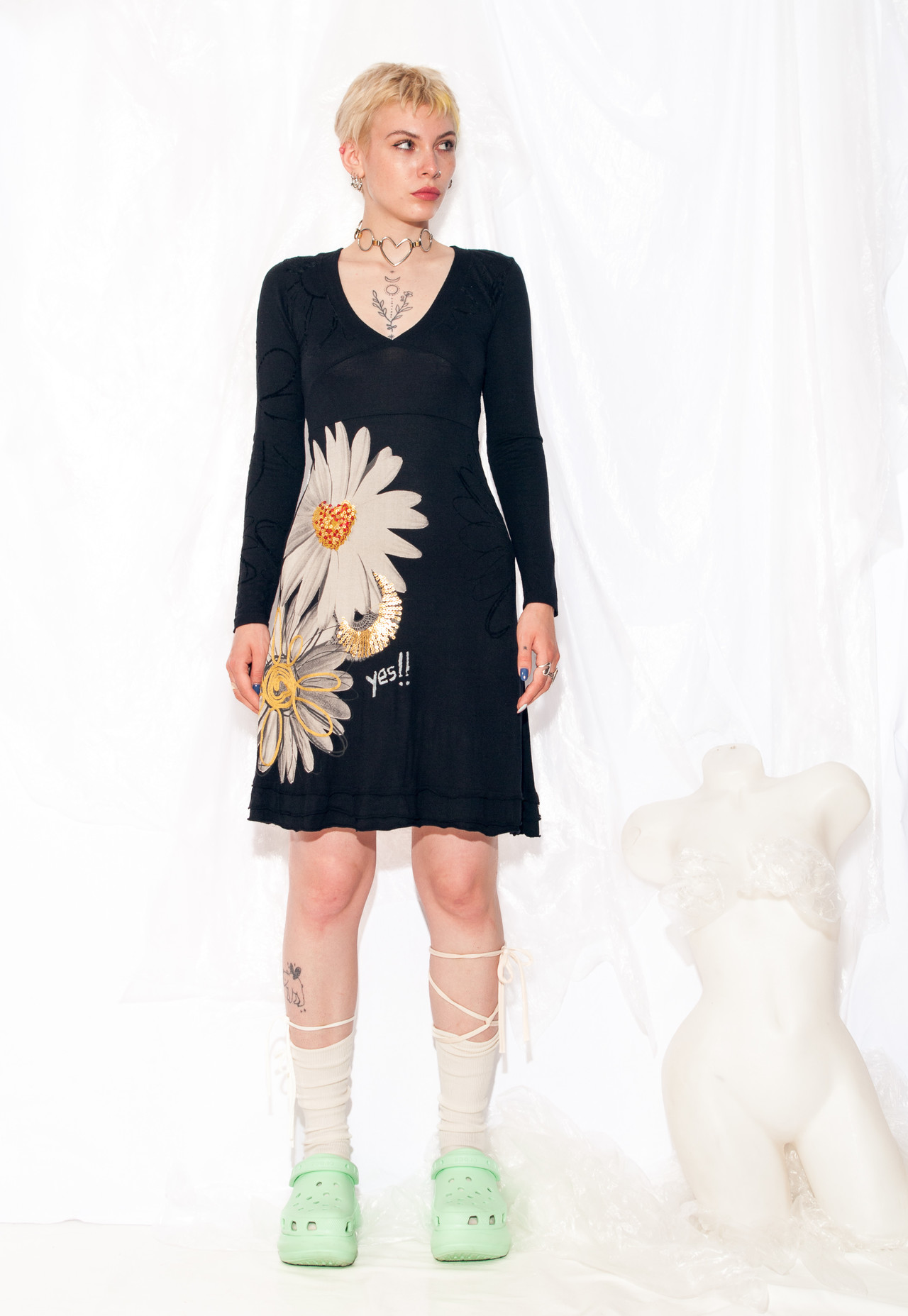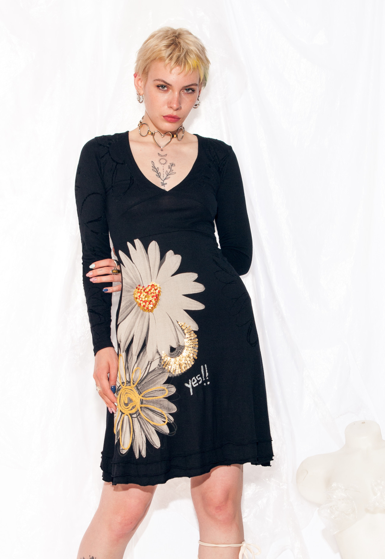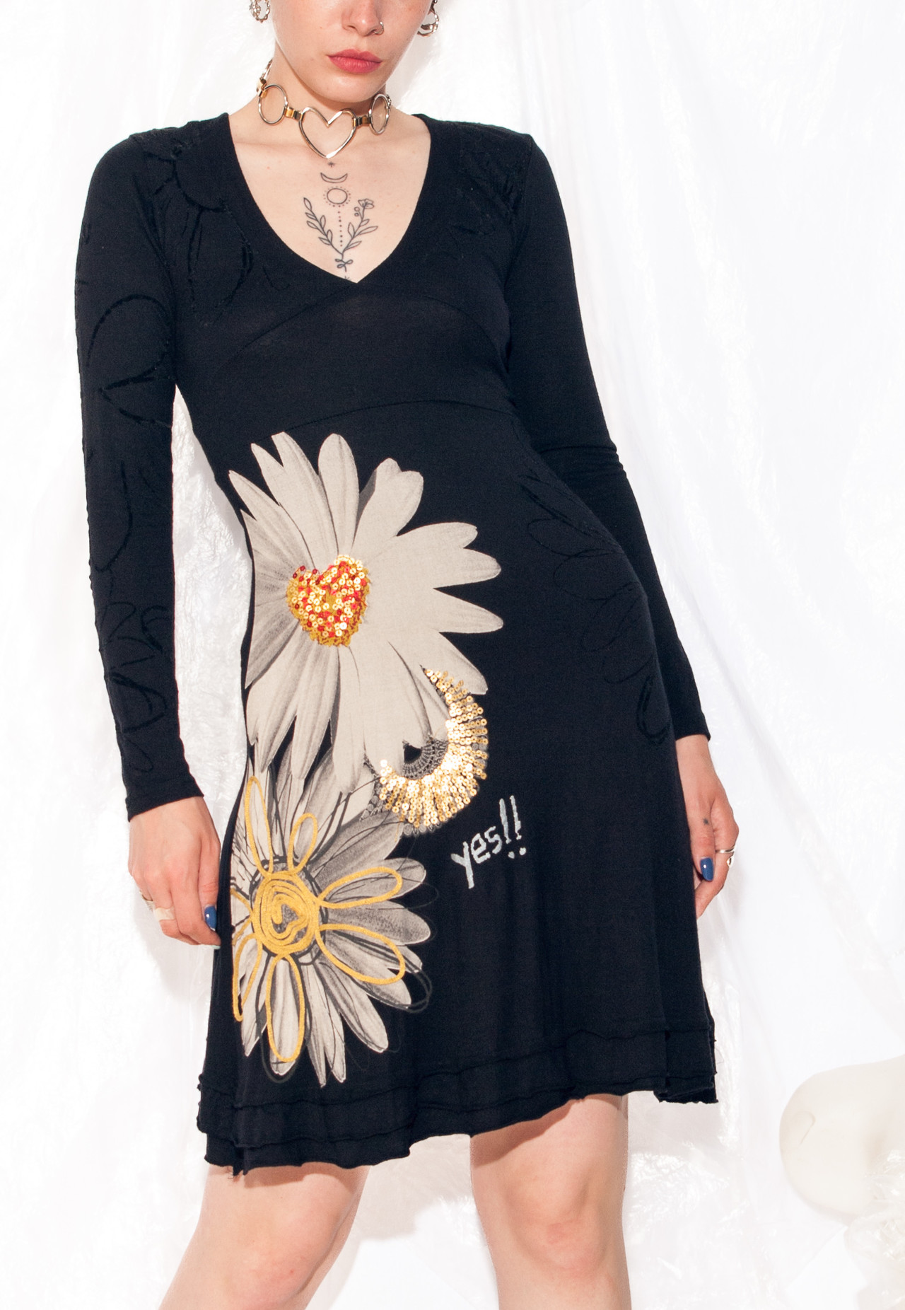This Y2K vintage dress from Desigual is a groovy midi that’s ready to take you on a time-travelling adventure. Made from stretchy viscose, it’s as sustainable as it is funky. Slip into this black beauty and channel your inner Spice Girl. Girl power, baby!