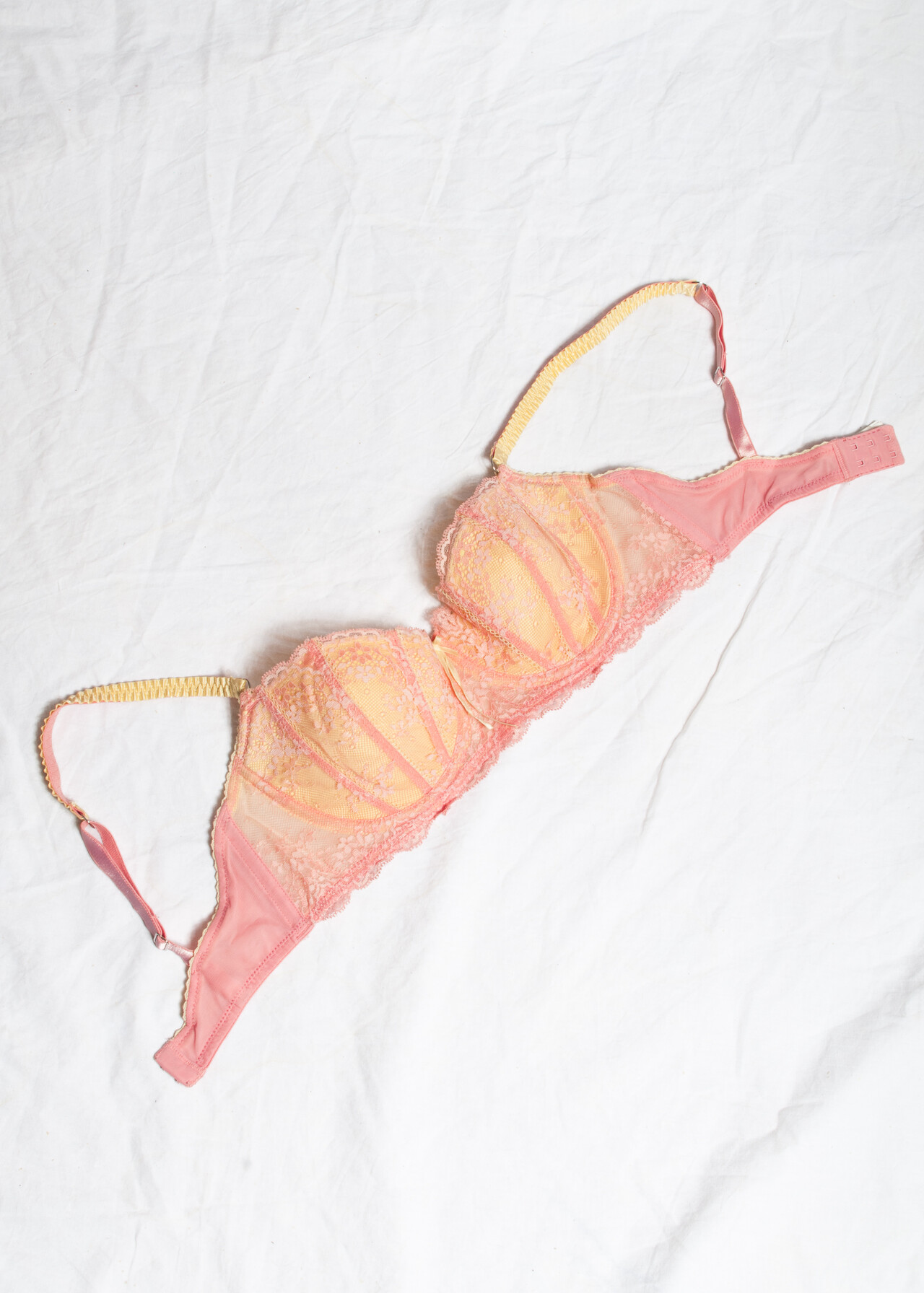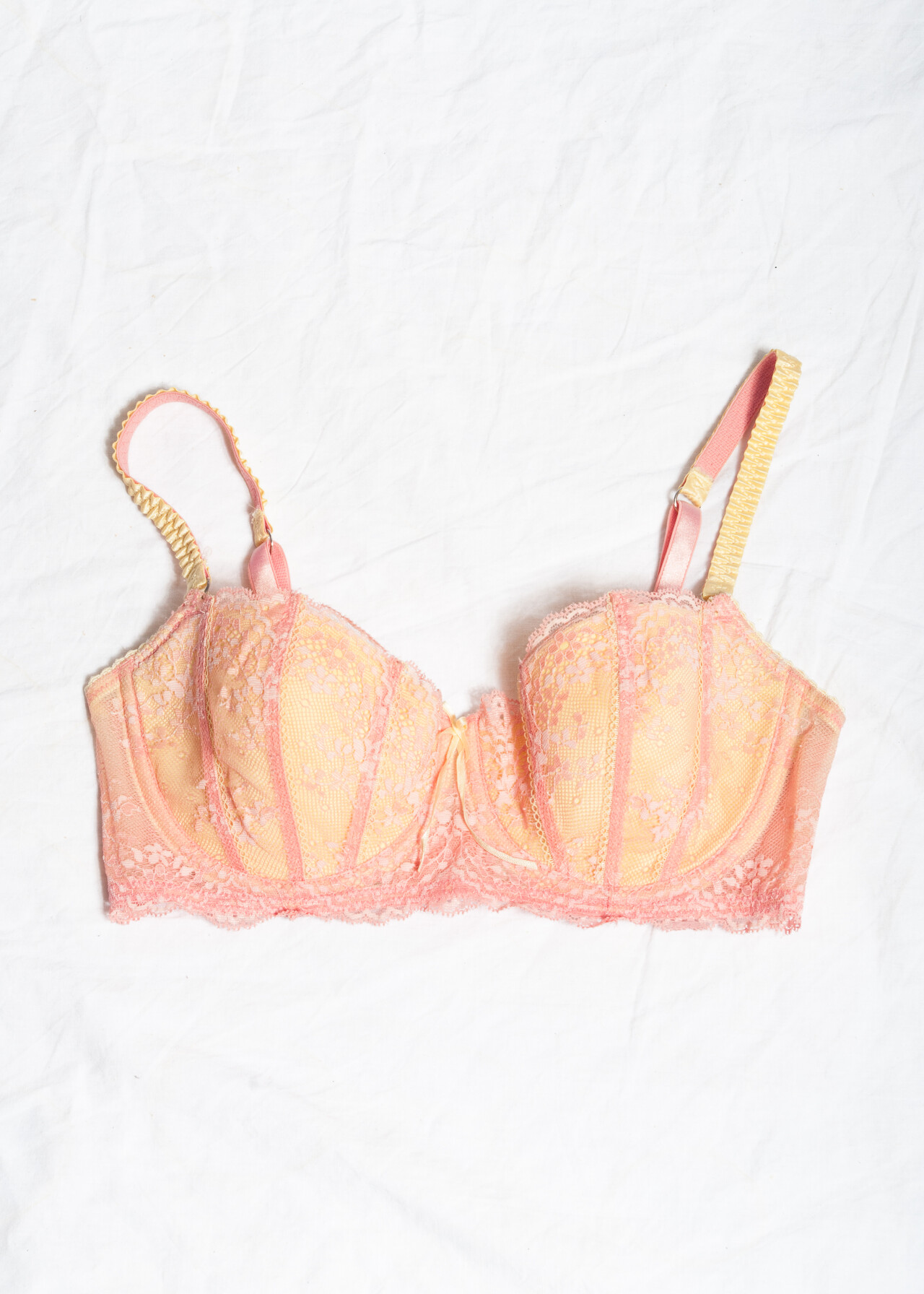 Vintage Y2K Elle Macpherson Lace Bra in Yellow and Pink