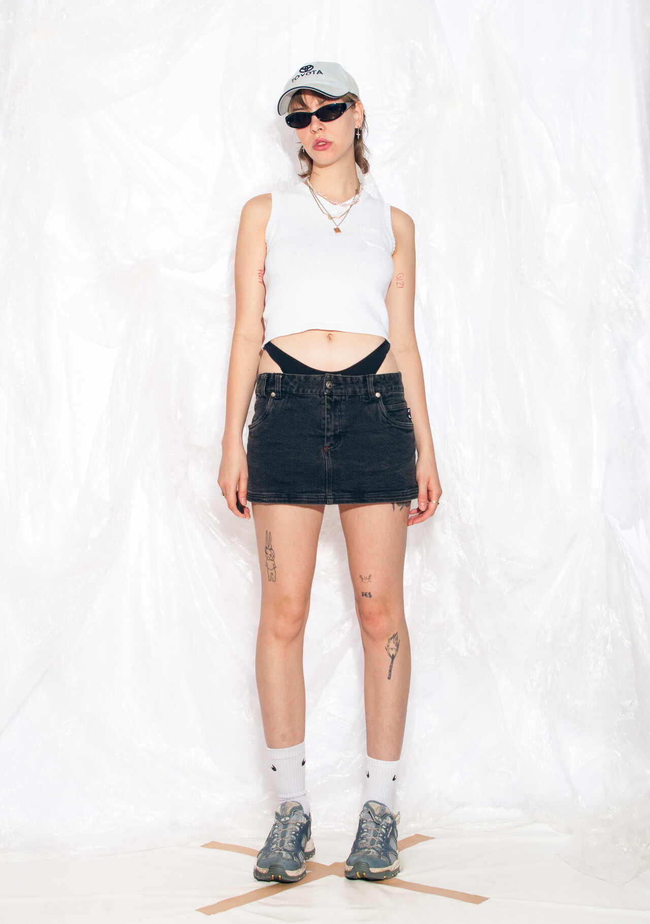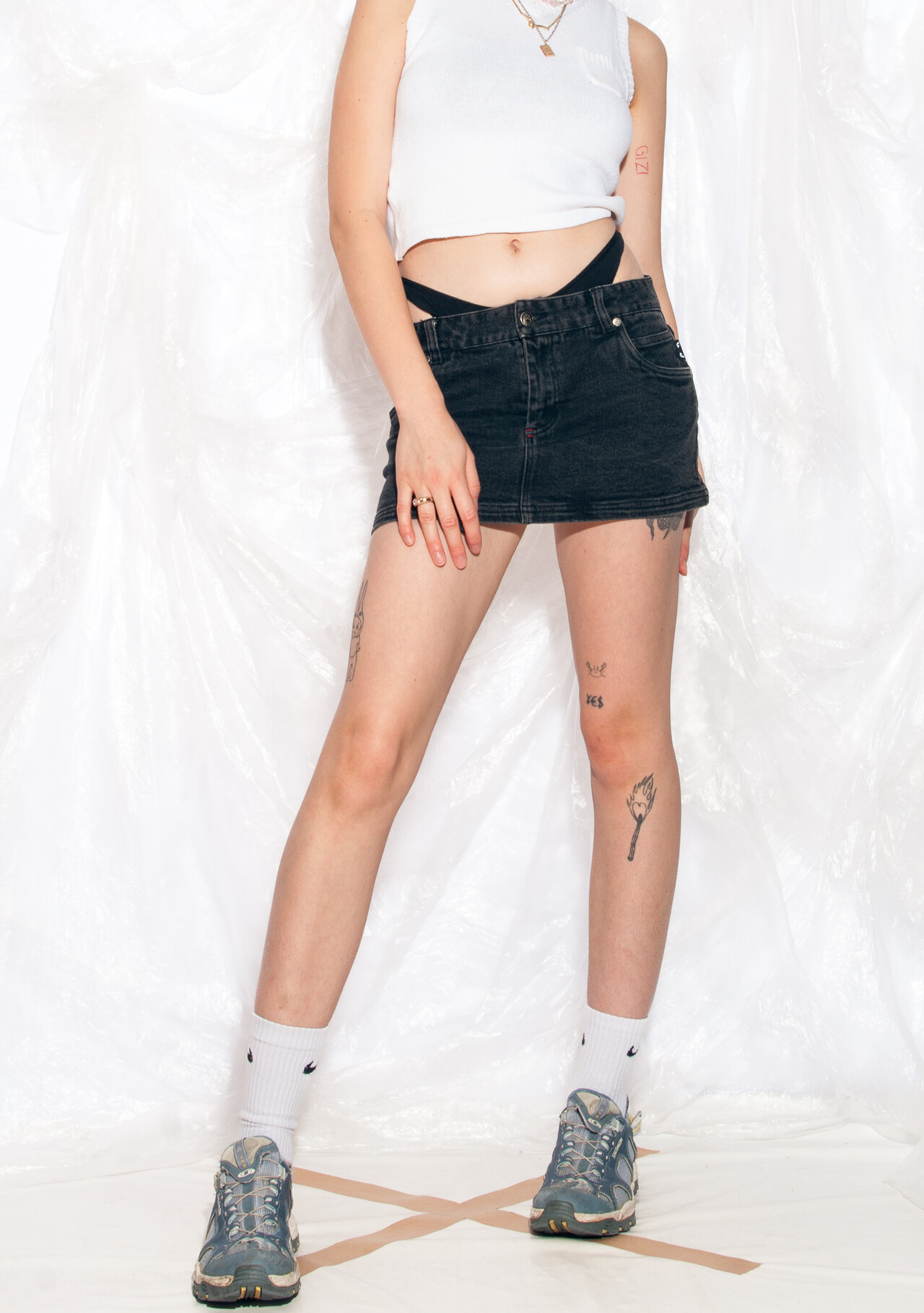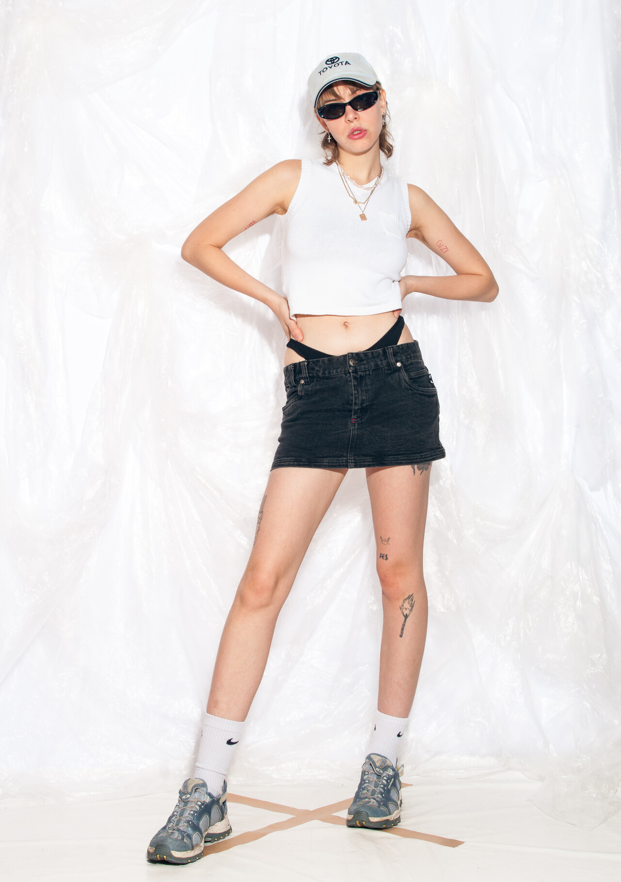 Embrace your Y2K swag with this black mini low-rise vintage skirt from Emily the Strange. Slip it on and let the early 2000s vibe take you for a wild nostalgia ride.