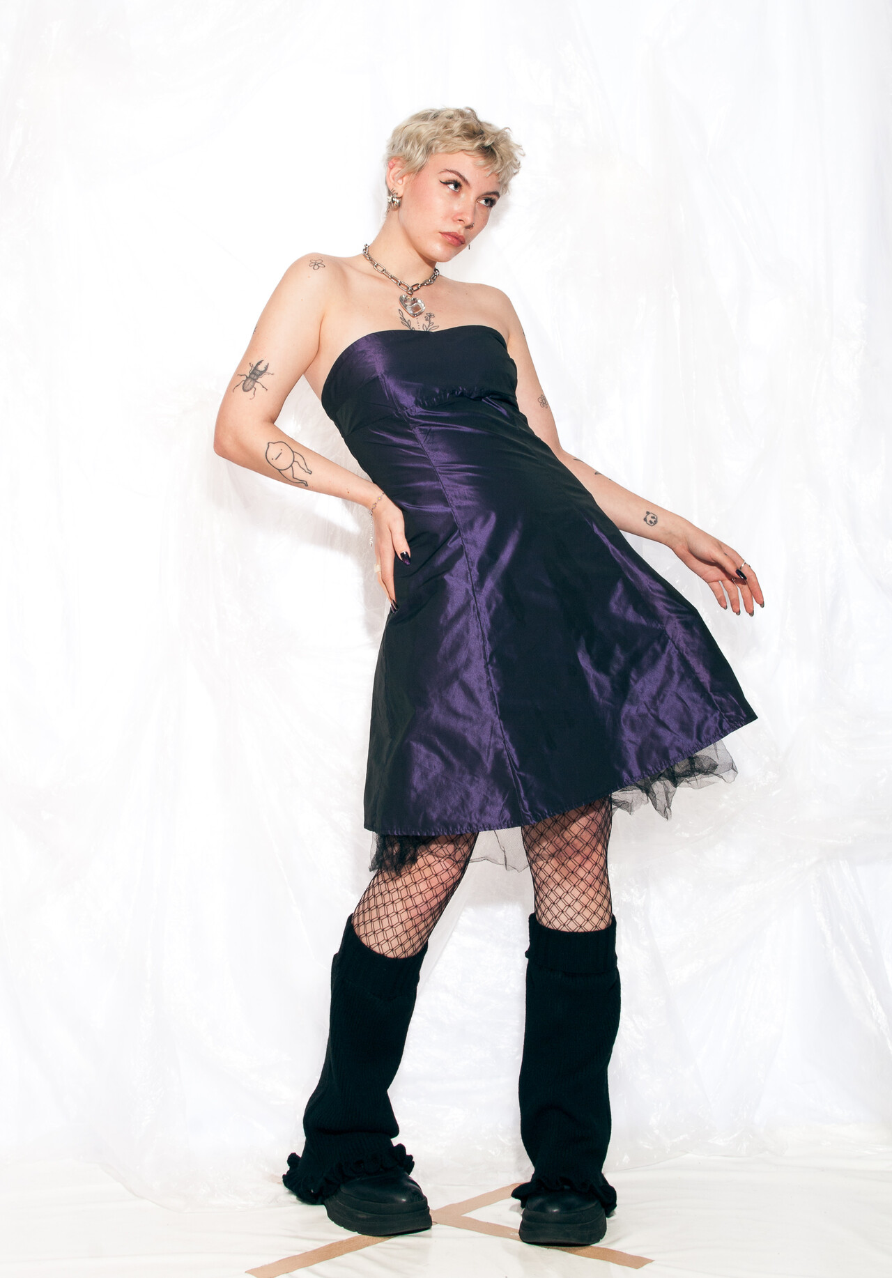 This Y2K vintage evening dress is like a blast from the nostalgic past. Bring your A-game to any party – in purple, the colour of millennial dreams.
