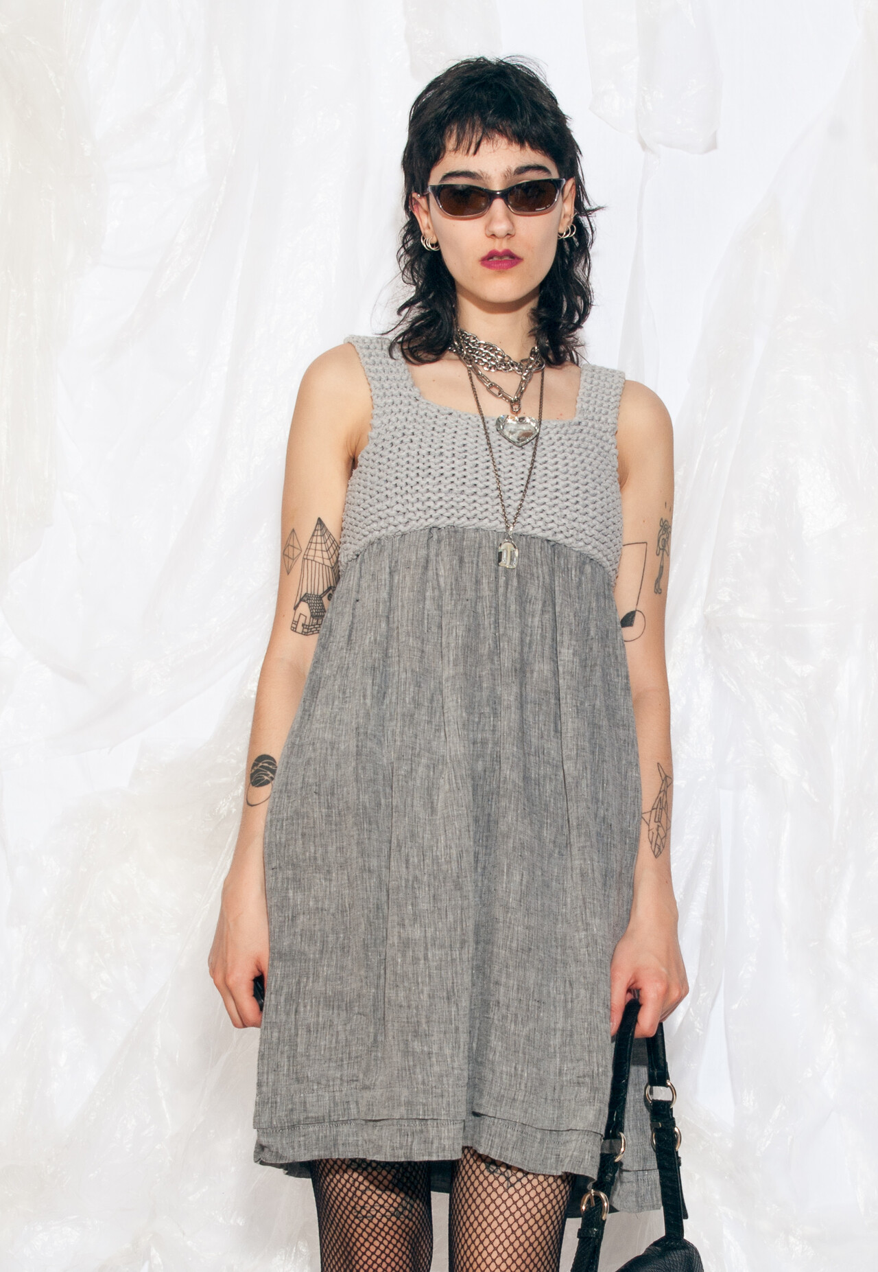 Vintage Y2K Fairy Dress in Knitted Grey