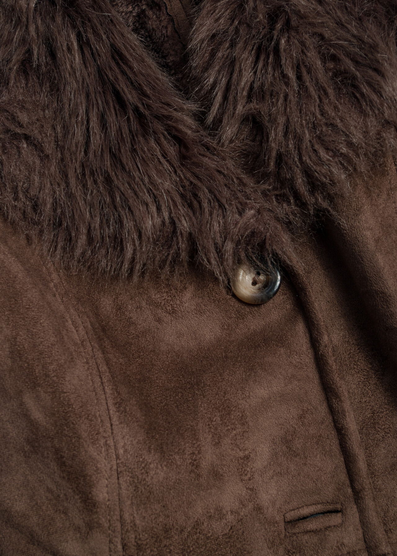 Tags: 2000s style clothing, earthy brown jacket, faux shearling coat, fur collar coat, suede trench coat, whimsigoth, winter coat, y2k grunge outfit, y2k vintage fashion