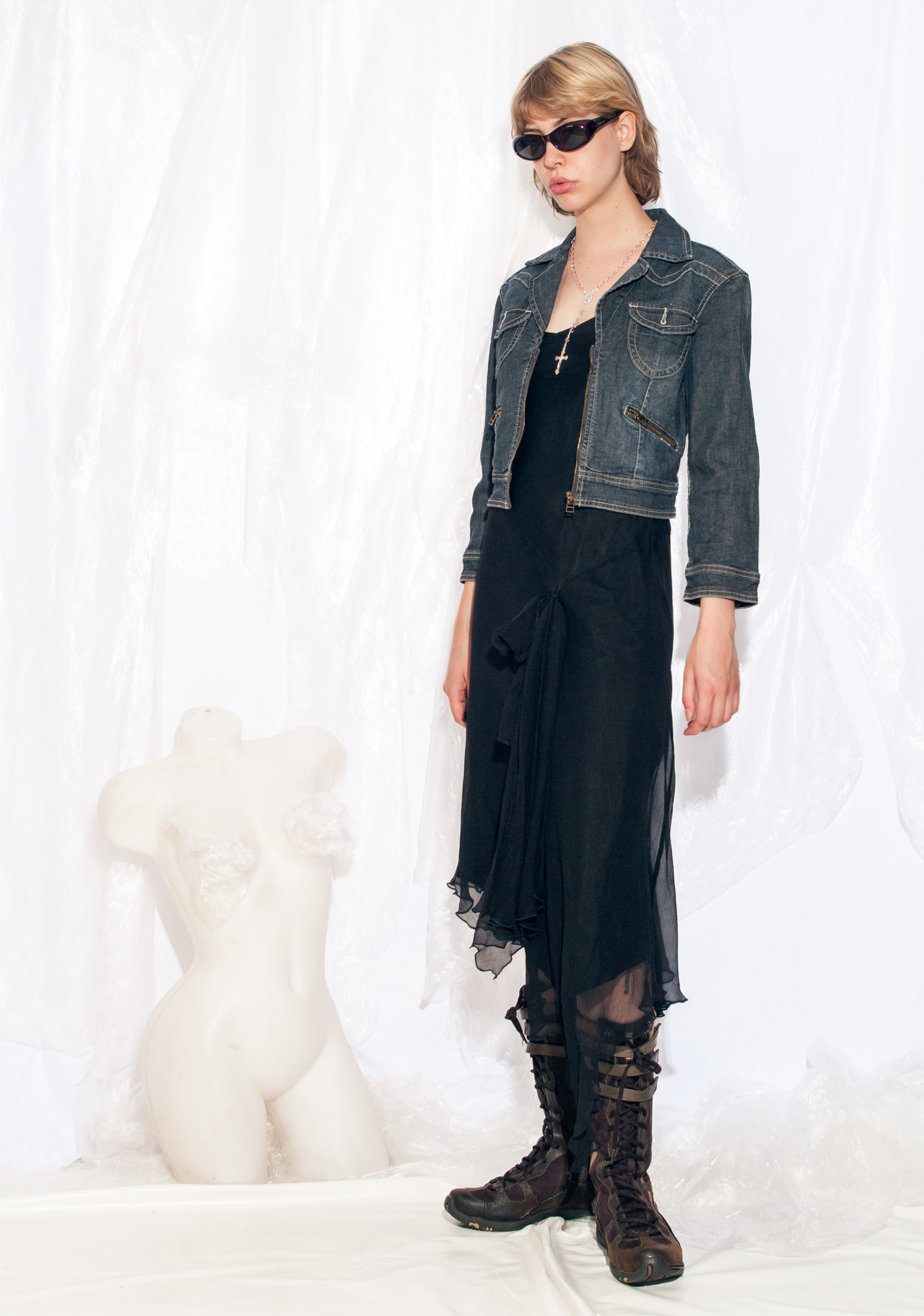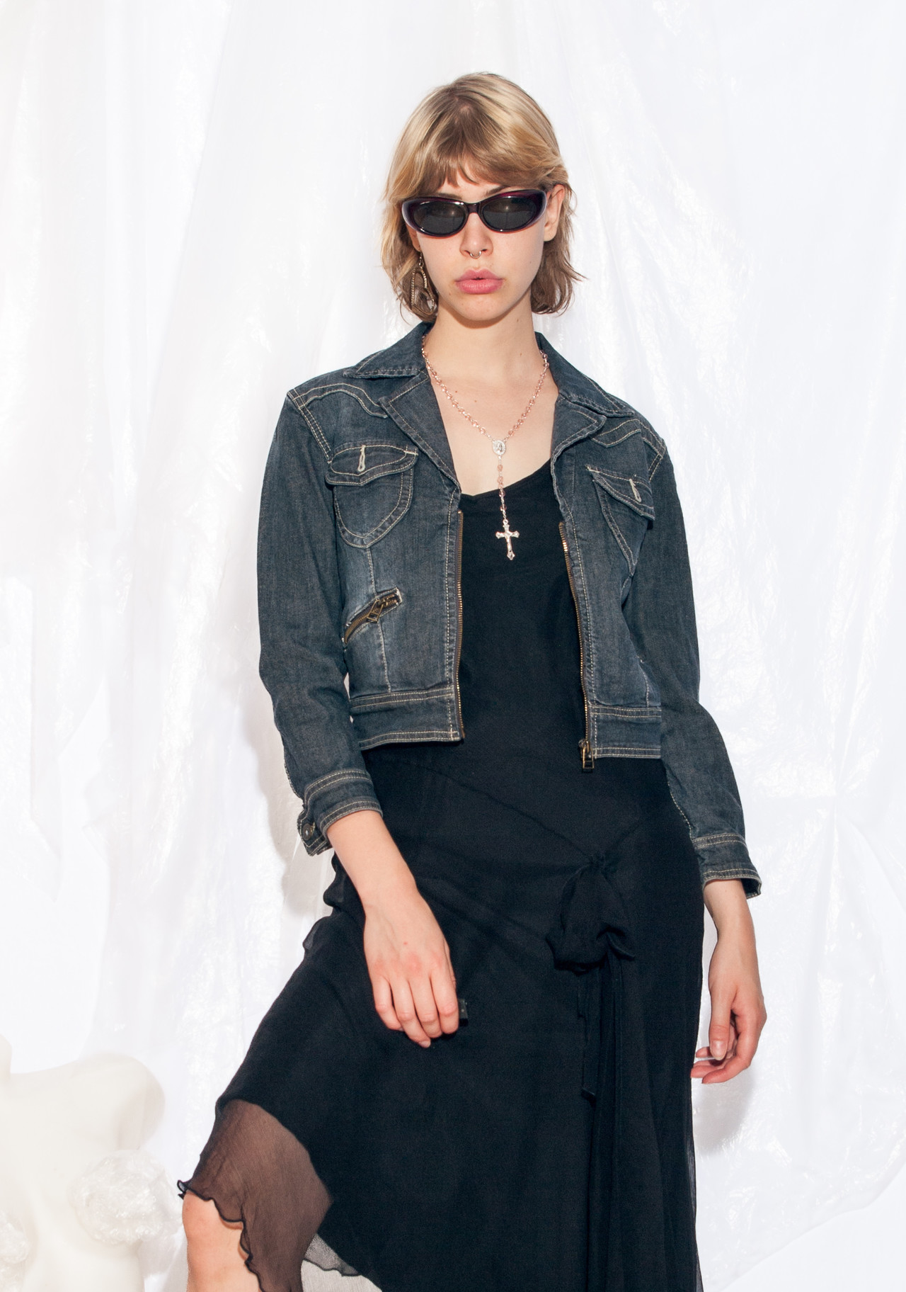 Vintage denim jacket 90s reworked cropped grunge jacket