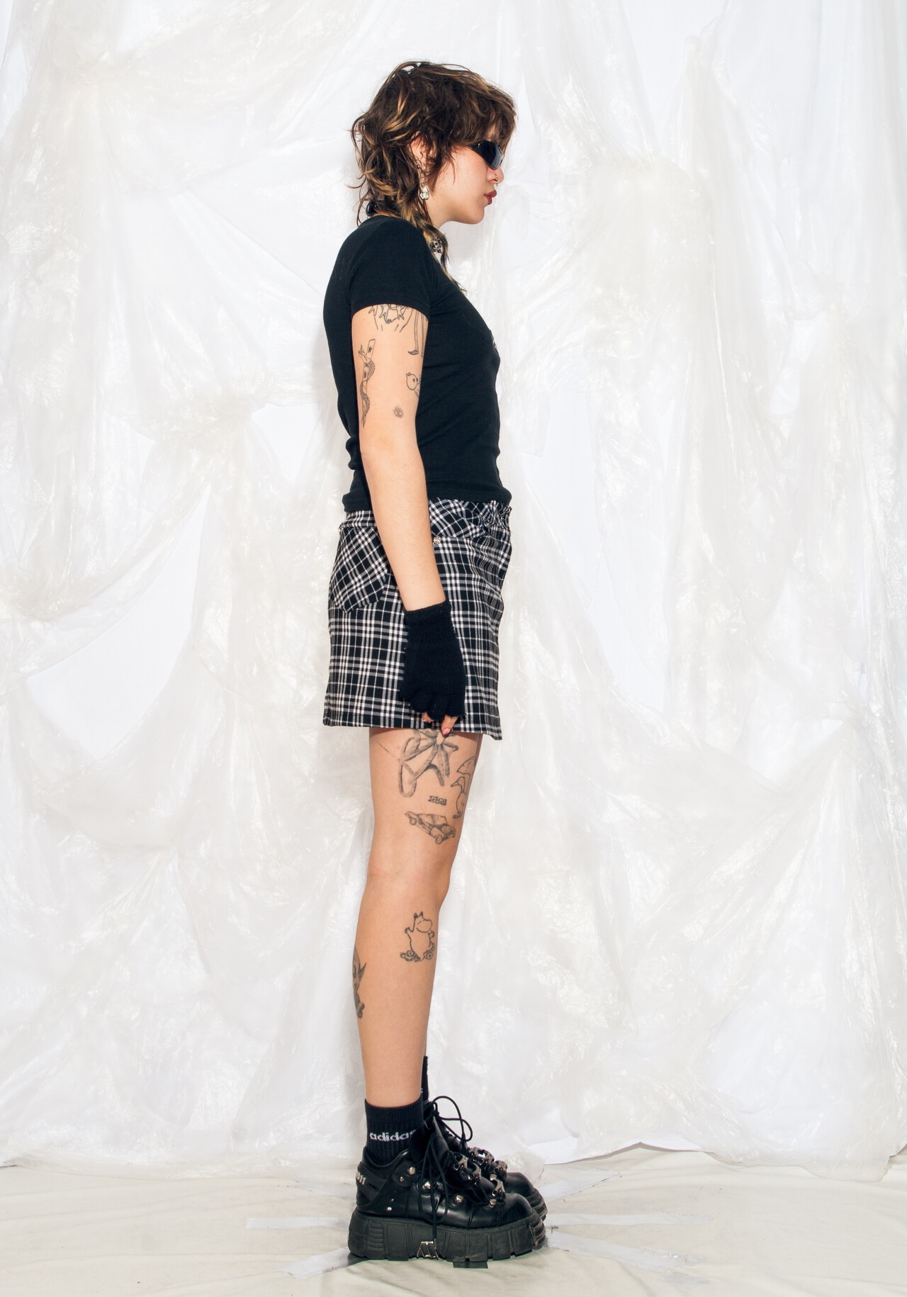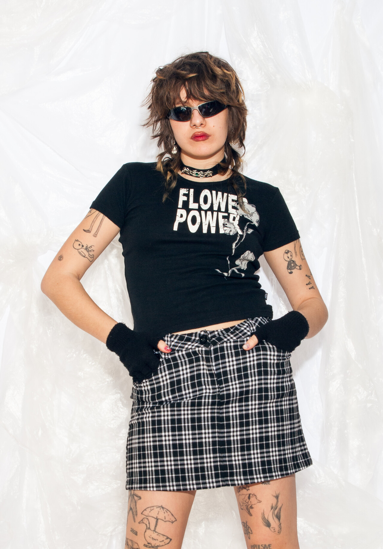 Vintage Y2K Flower Power Baby Tee in Black Cotton