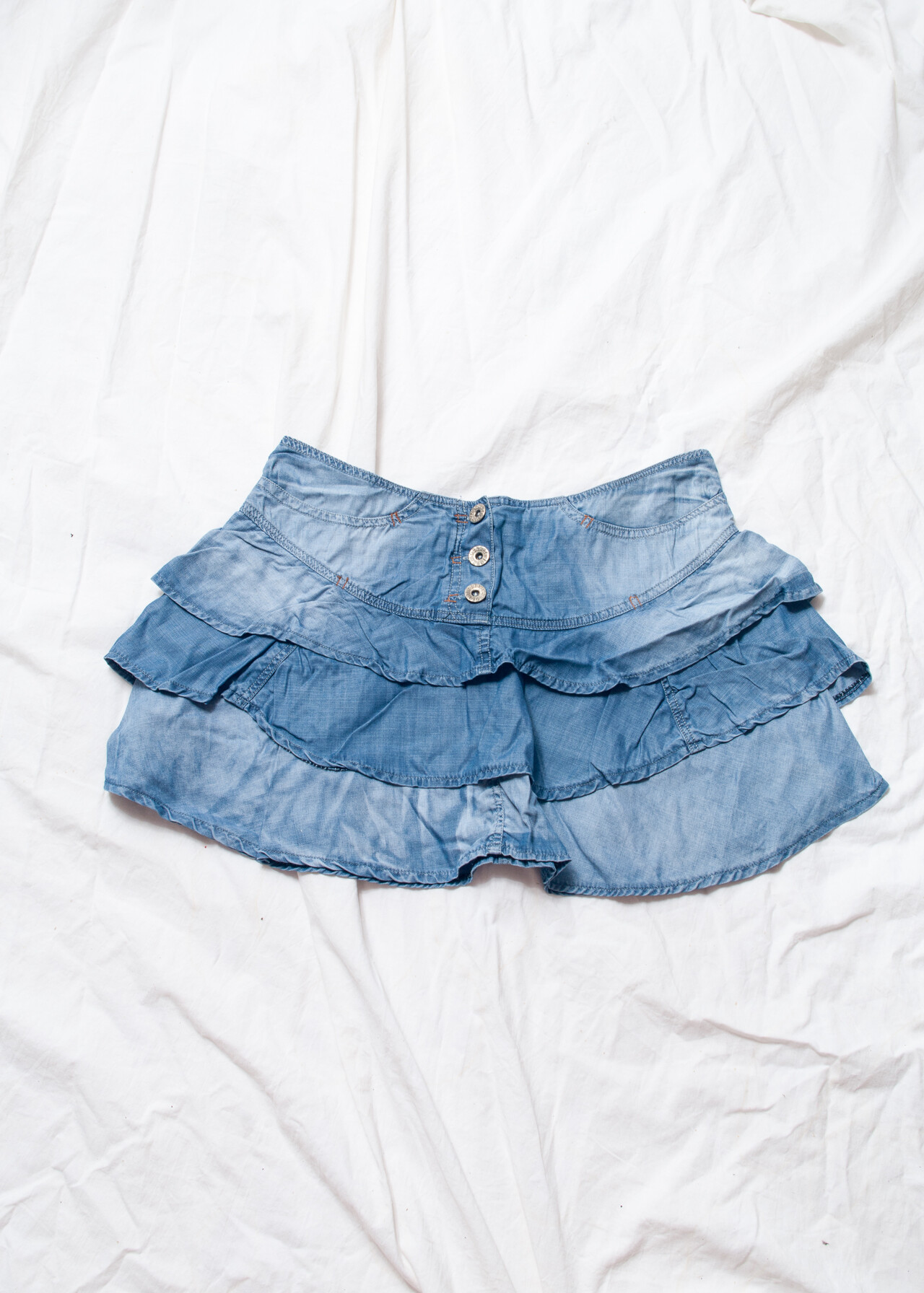Tags: 2000s vintage style, frilly skirt, low rise waist, stonewashed denim, whimsigoth