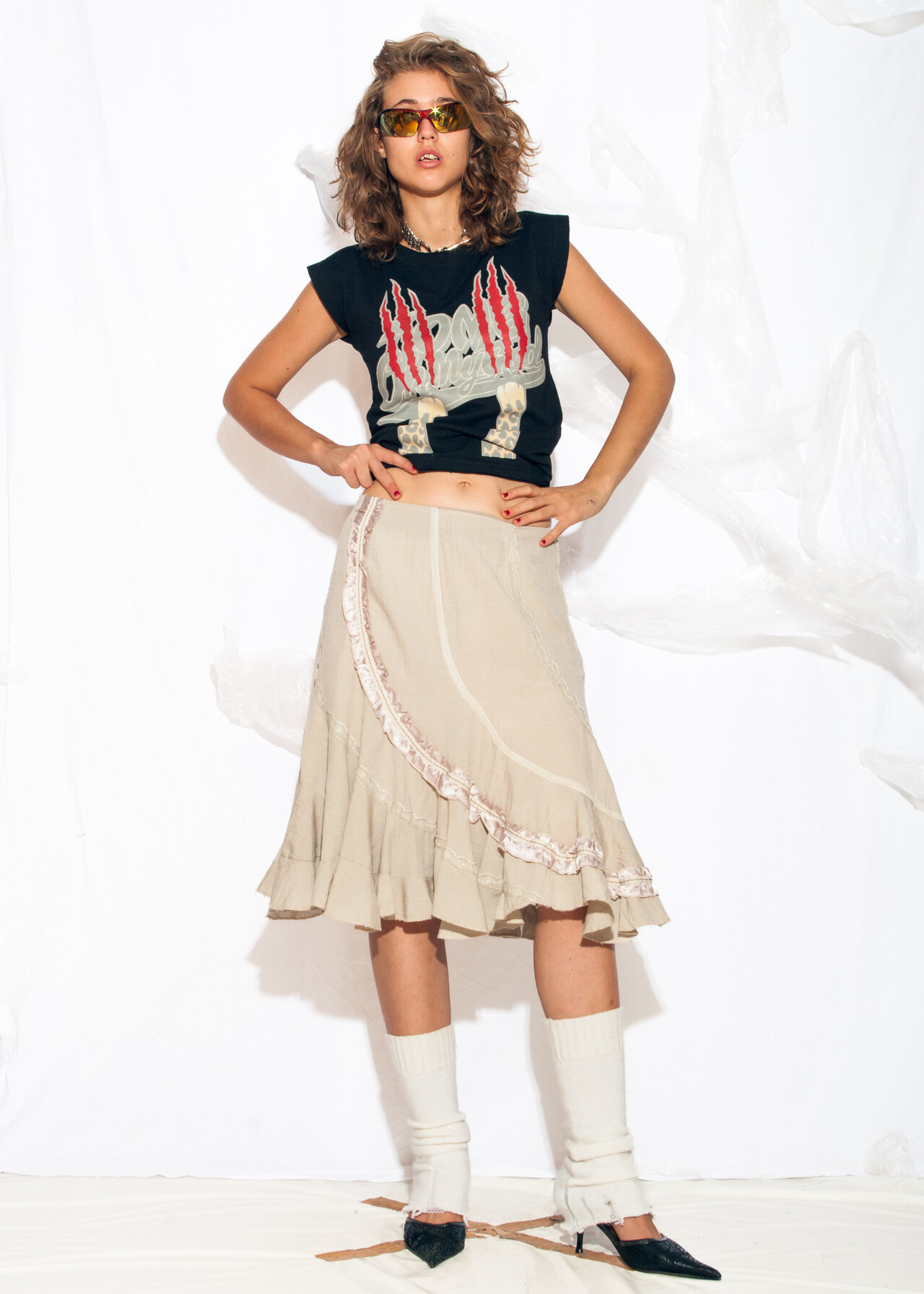 Be the first to review “Vintage Y2K Frilly Midi Skirt in Beige” Cancel reply
