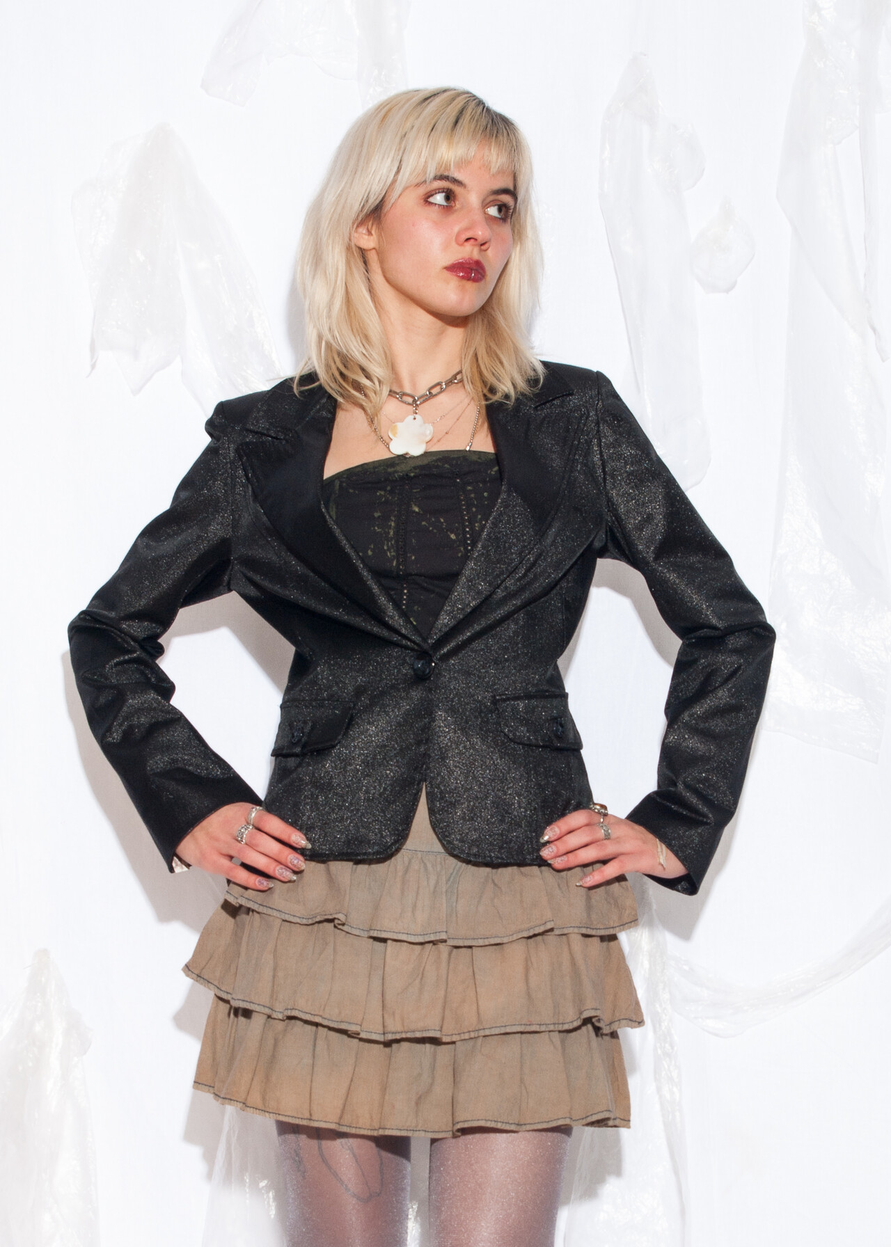 Be the first to review “Vintage Y2K Glitter Blazer in Black” Cancel reply