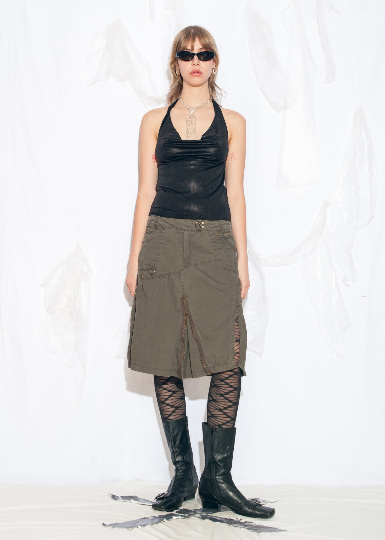 Vintage Y2K Grunge Skirt in Khaki Cotton