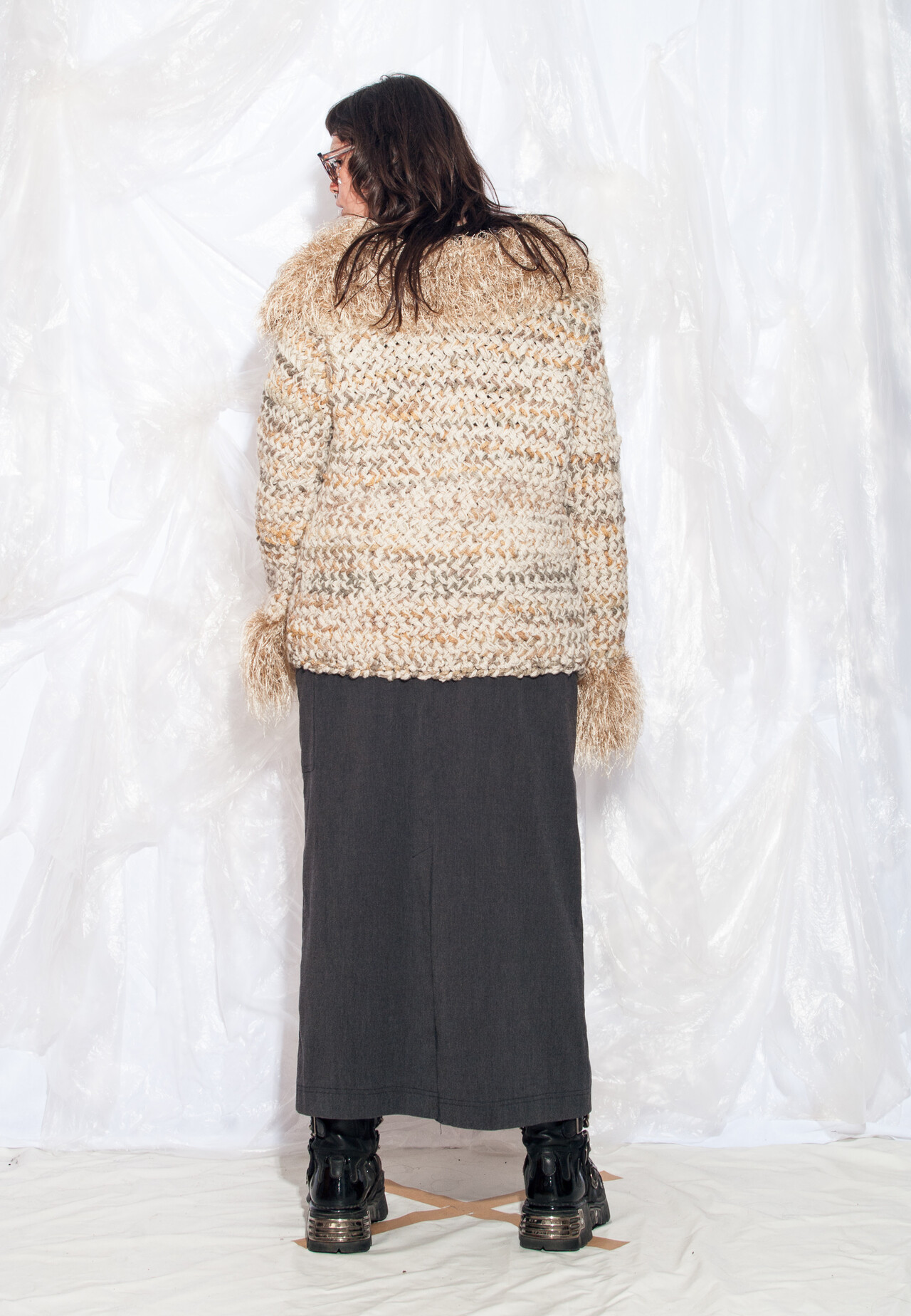 Be the first to review “Vintage Y2K Handmade Knit Cardigan in Beige w Furry Collar” Cancel reply
