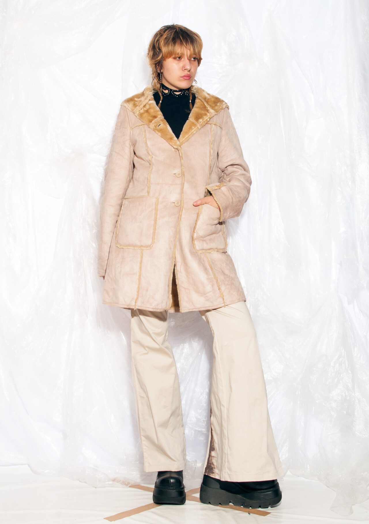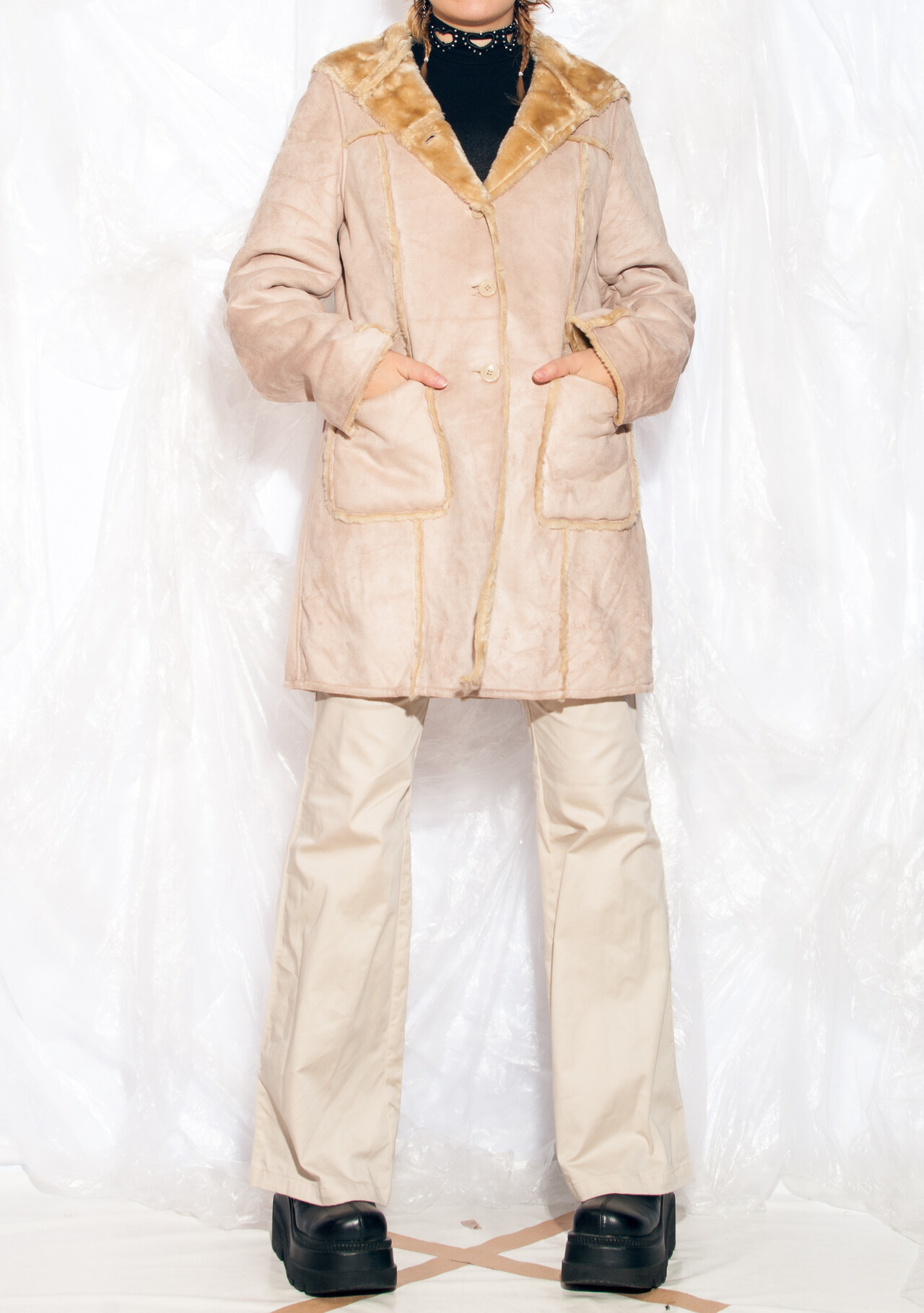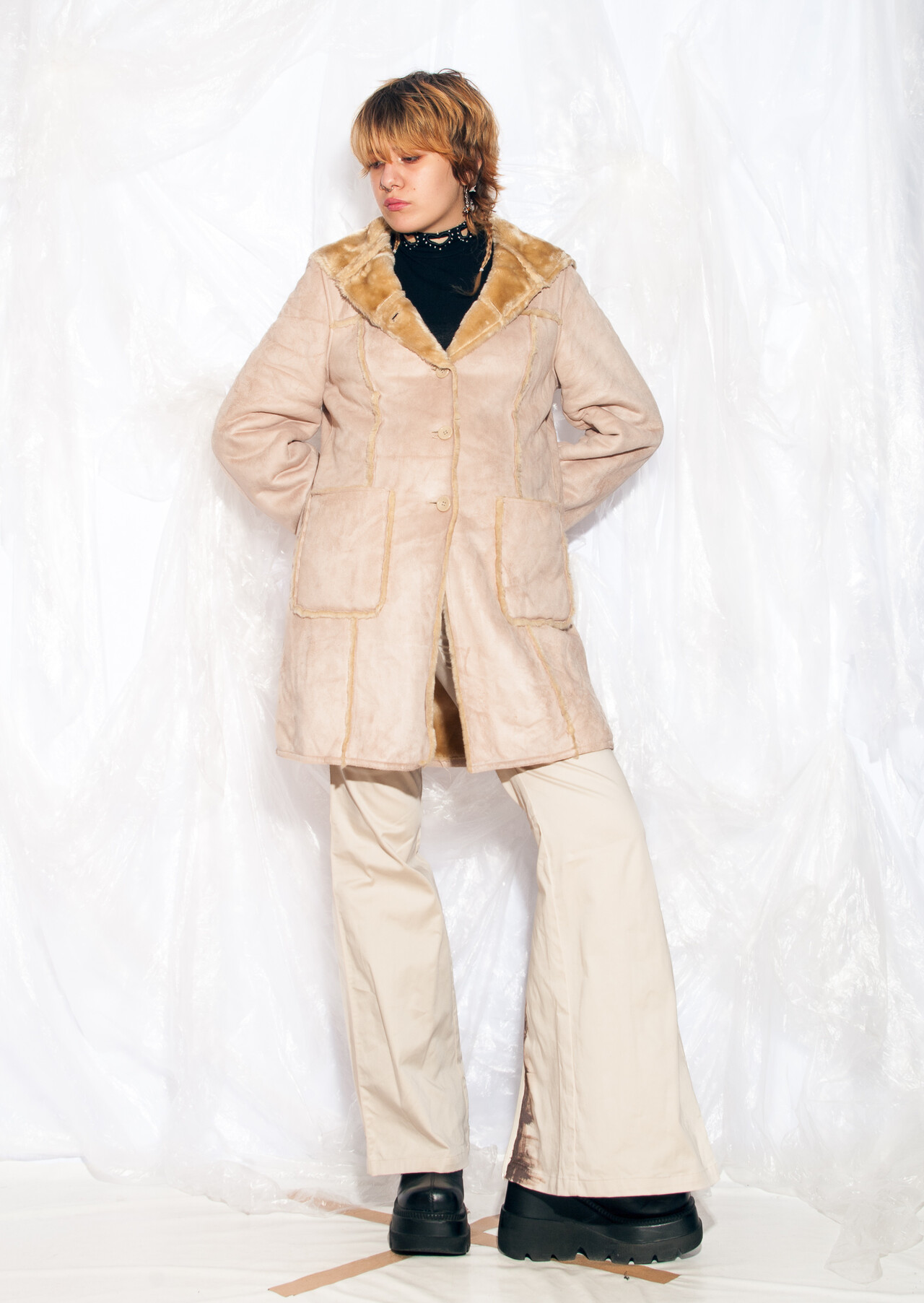 Be the first to review “Vintage Y2K Hooded Coat in Beige Faux Shearling” Cancel reply