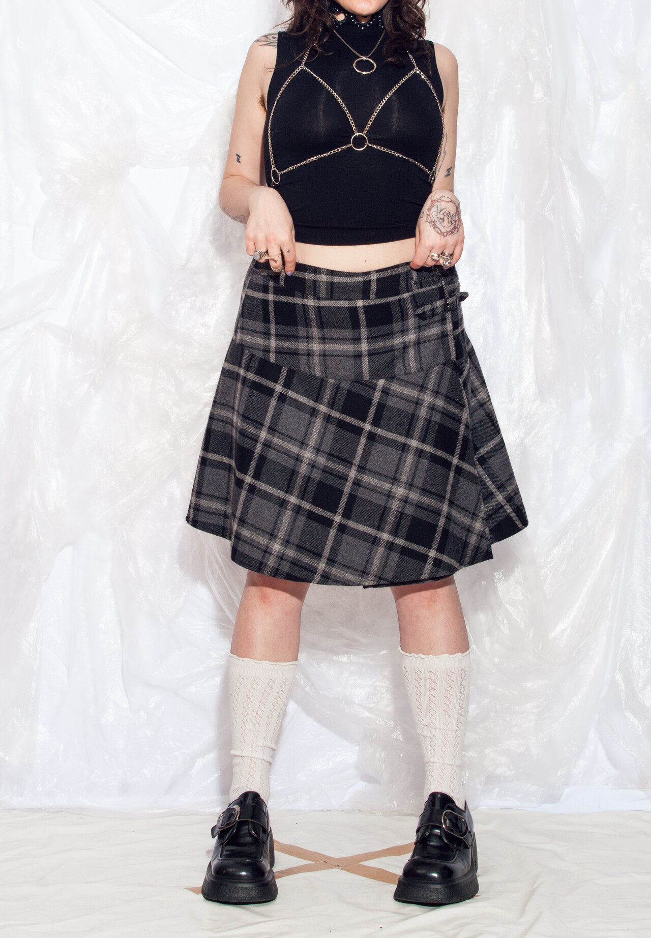 This Y2K vintage skirt is perfect for whichever clique you want to join—whether you’re feeling preppy goth vibes or going for that grungey punk look, this wool blend kilt skirt has got you covered.