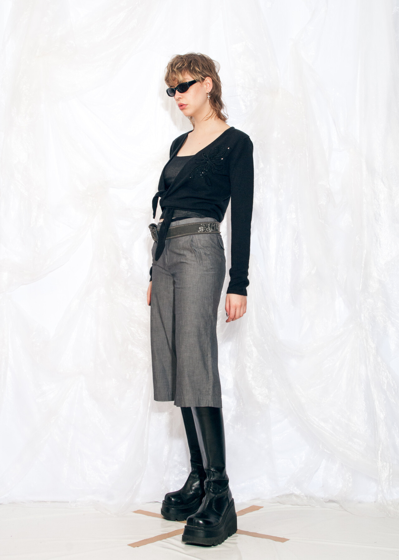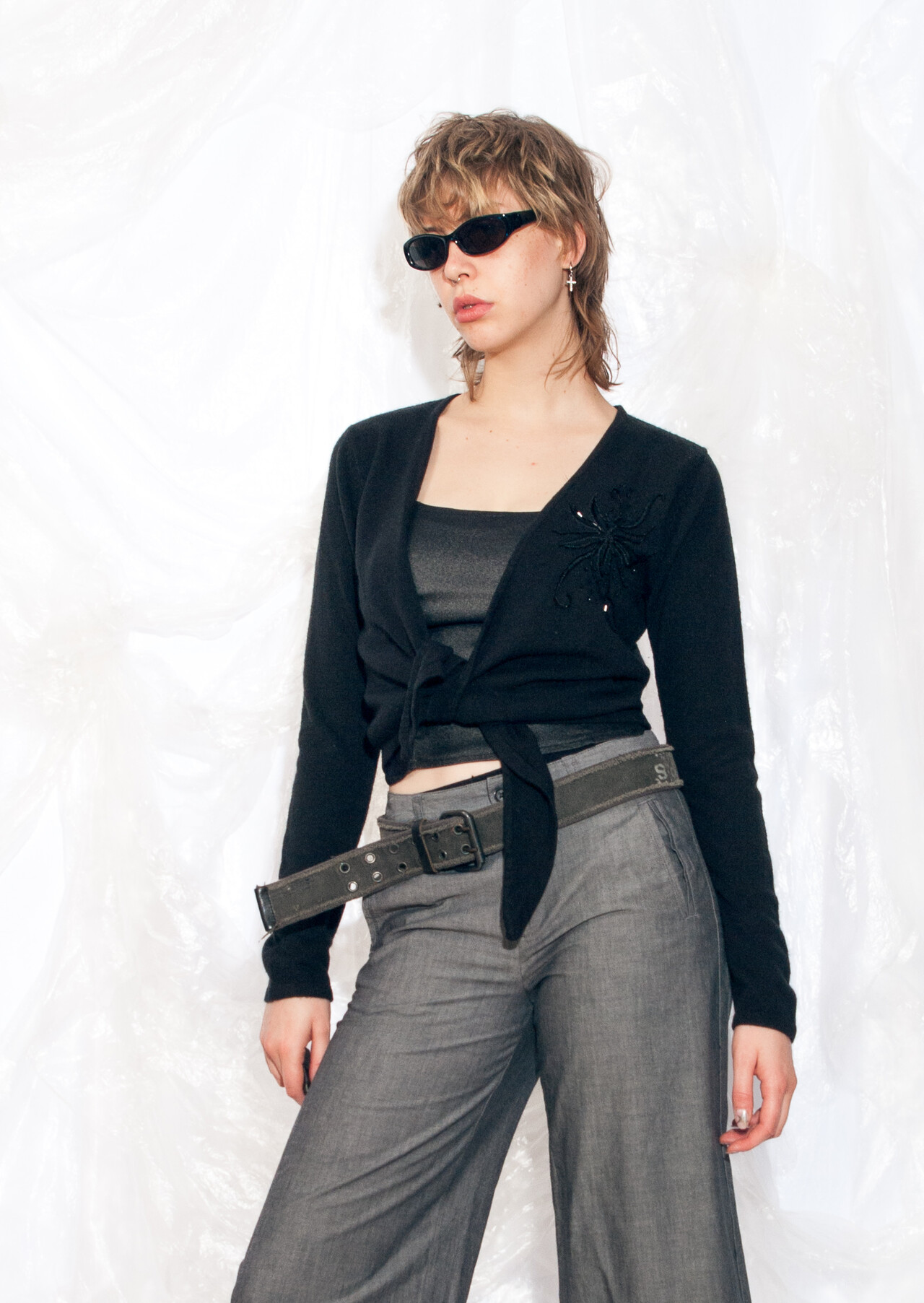 This Y2K vintage knit cardigan is the epitome of whimsigoth fashion. Wrap yourself in its dark embrace and turn heads while spoOooky drawing hearts.