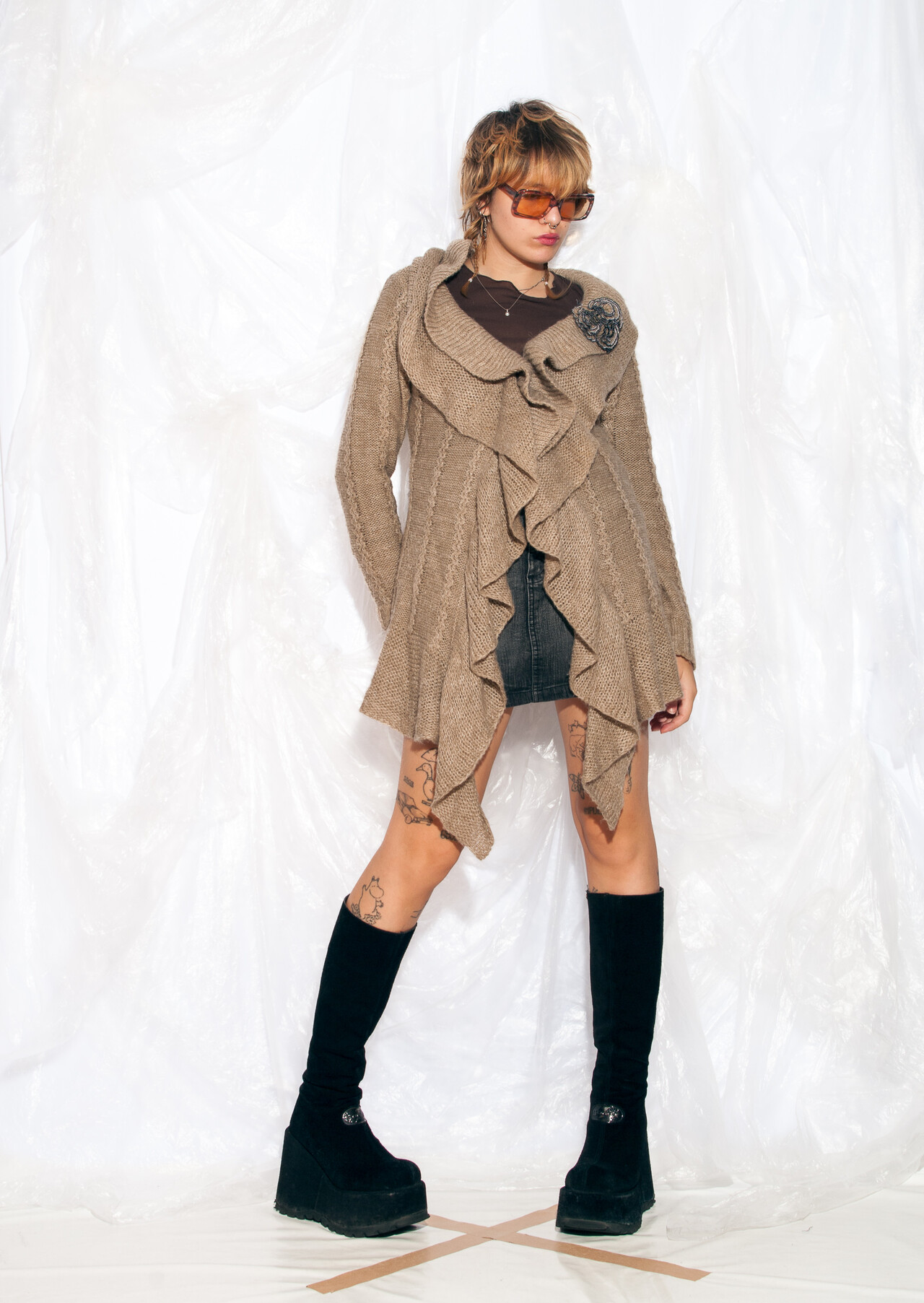Be the first to review “Vintage Y2K Knit Cardigan in Brown with Frilly Knitted Roses” Cancel reply