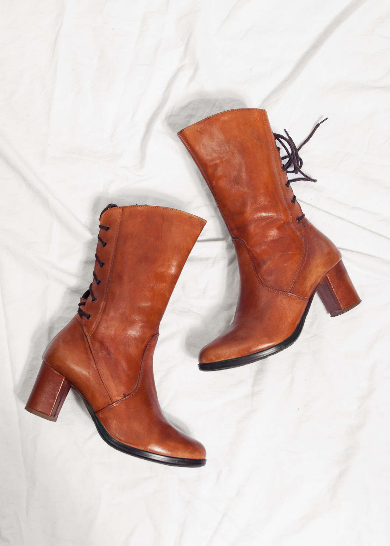 Vintage Y2K Lace-Up Leather Boots in Brown
