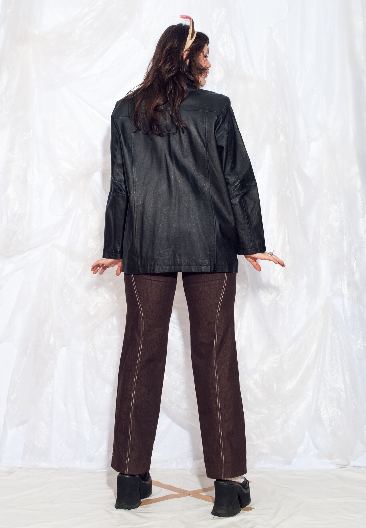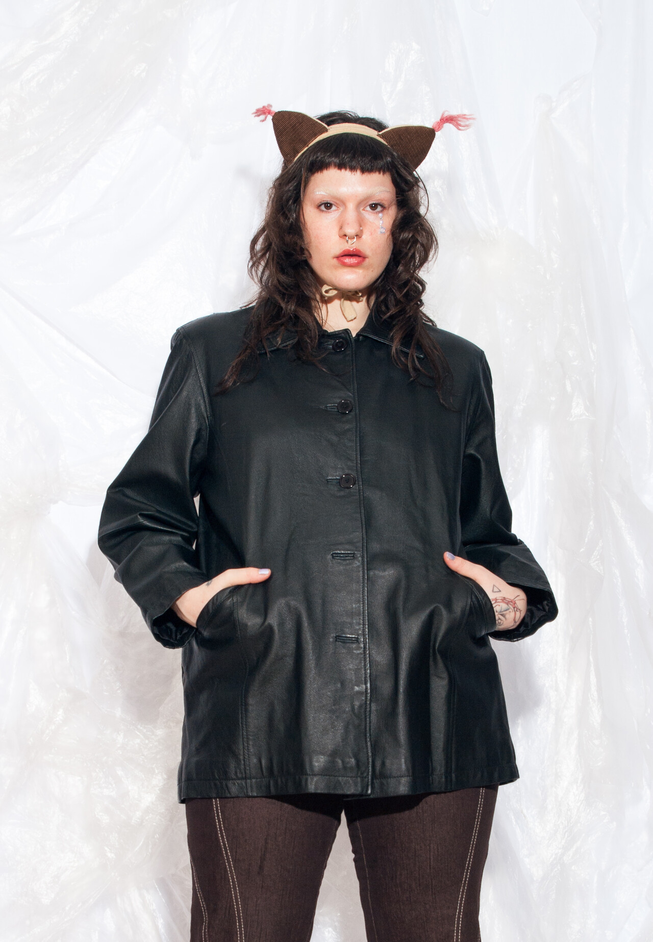This 90s vintage black leather coat is warmer than your Grandma’s holiday cooking and more good-looking than your high school crush.