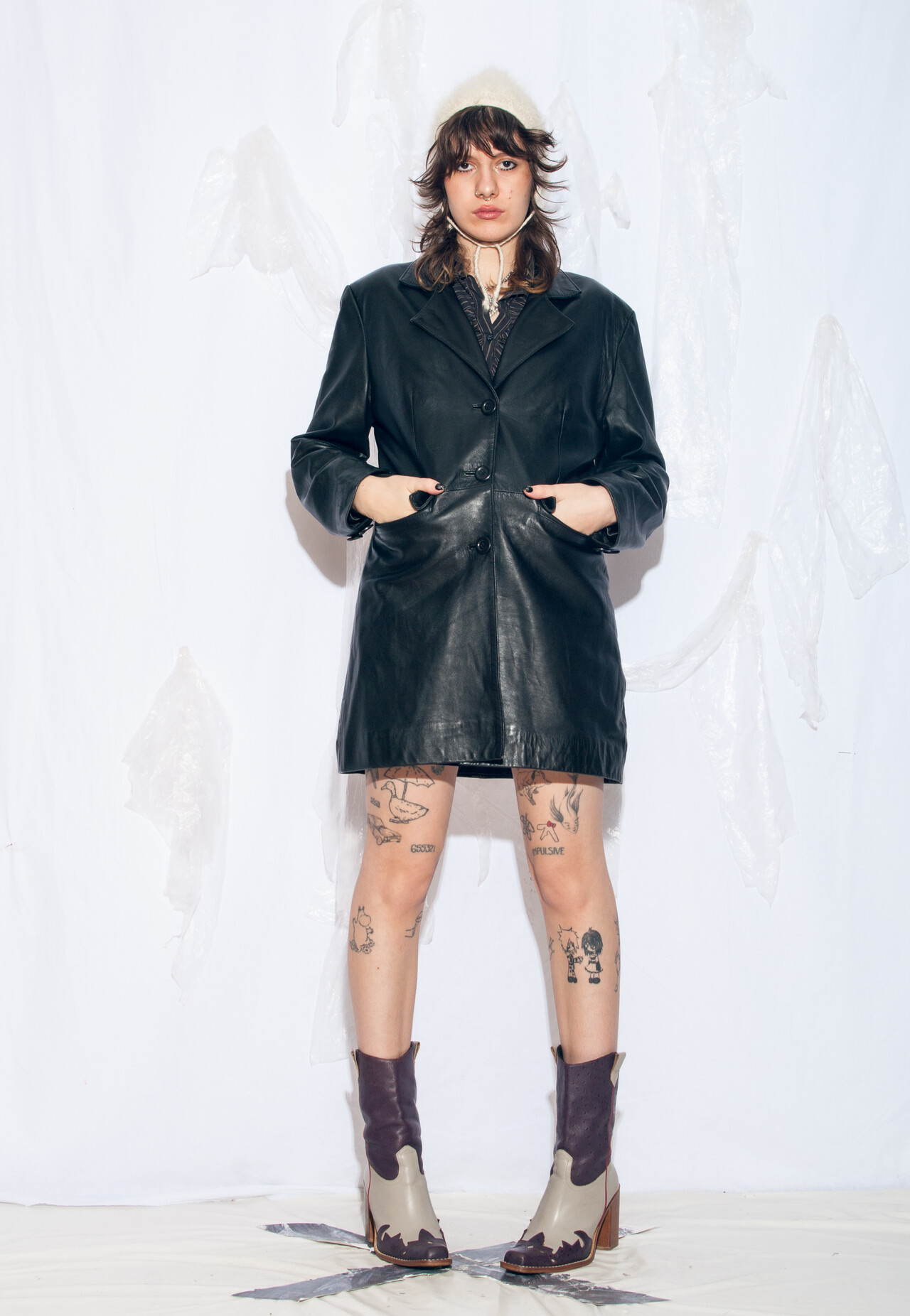 This Y2K vintage coat is ready to make you feel like an undercover agent from the Matrix with a grunge twist!