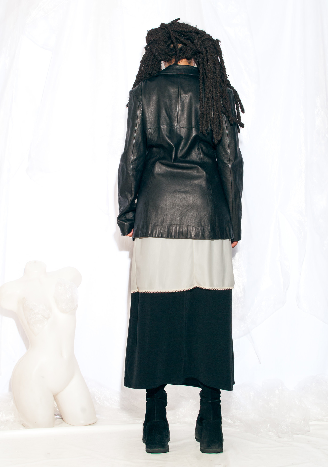 Vintage Y2K Leather Coat in Black Matrix Grunge