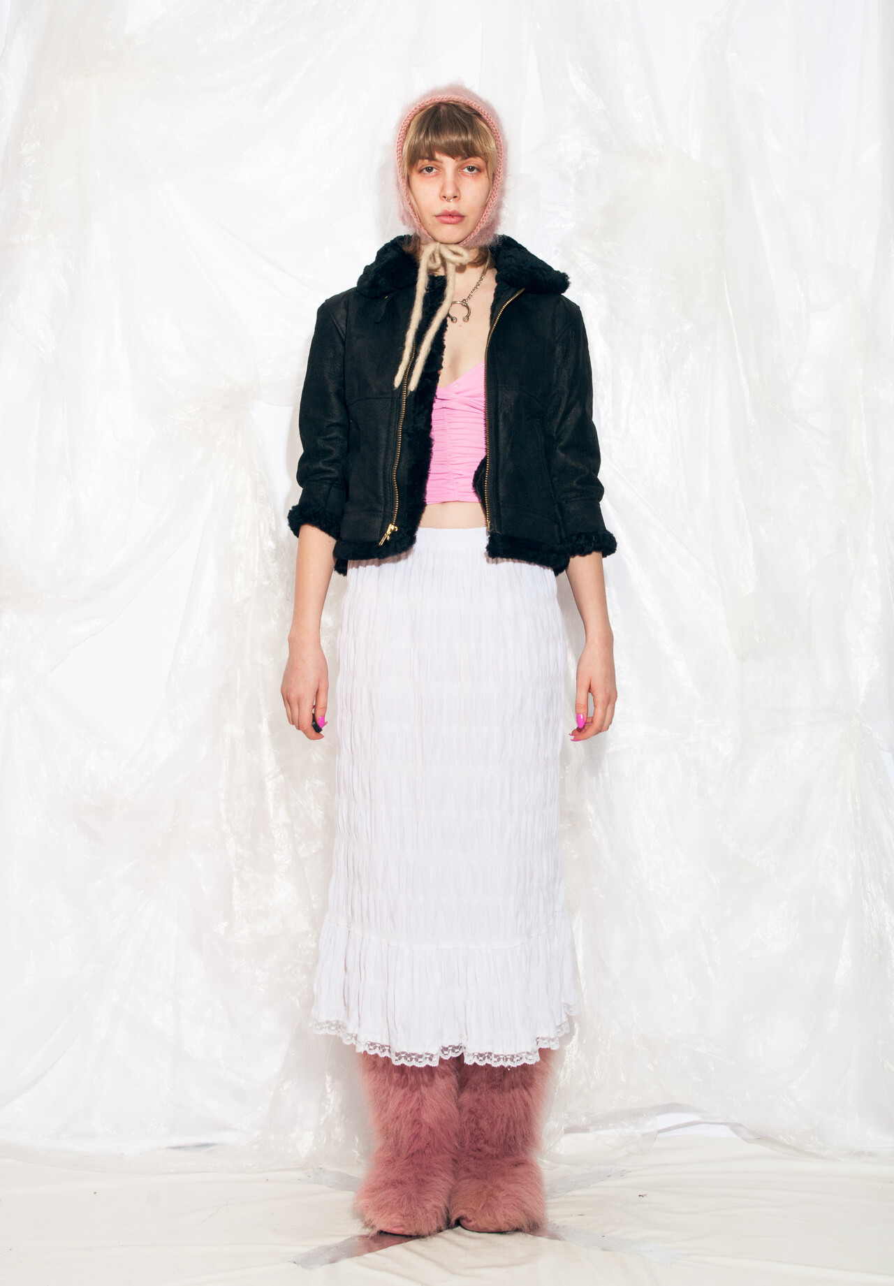 Our model, Szonja is 173 cm / 67.5" tall and she's a size XS.