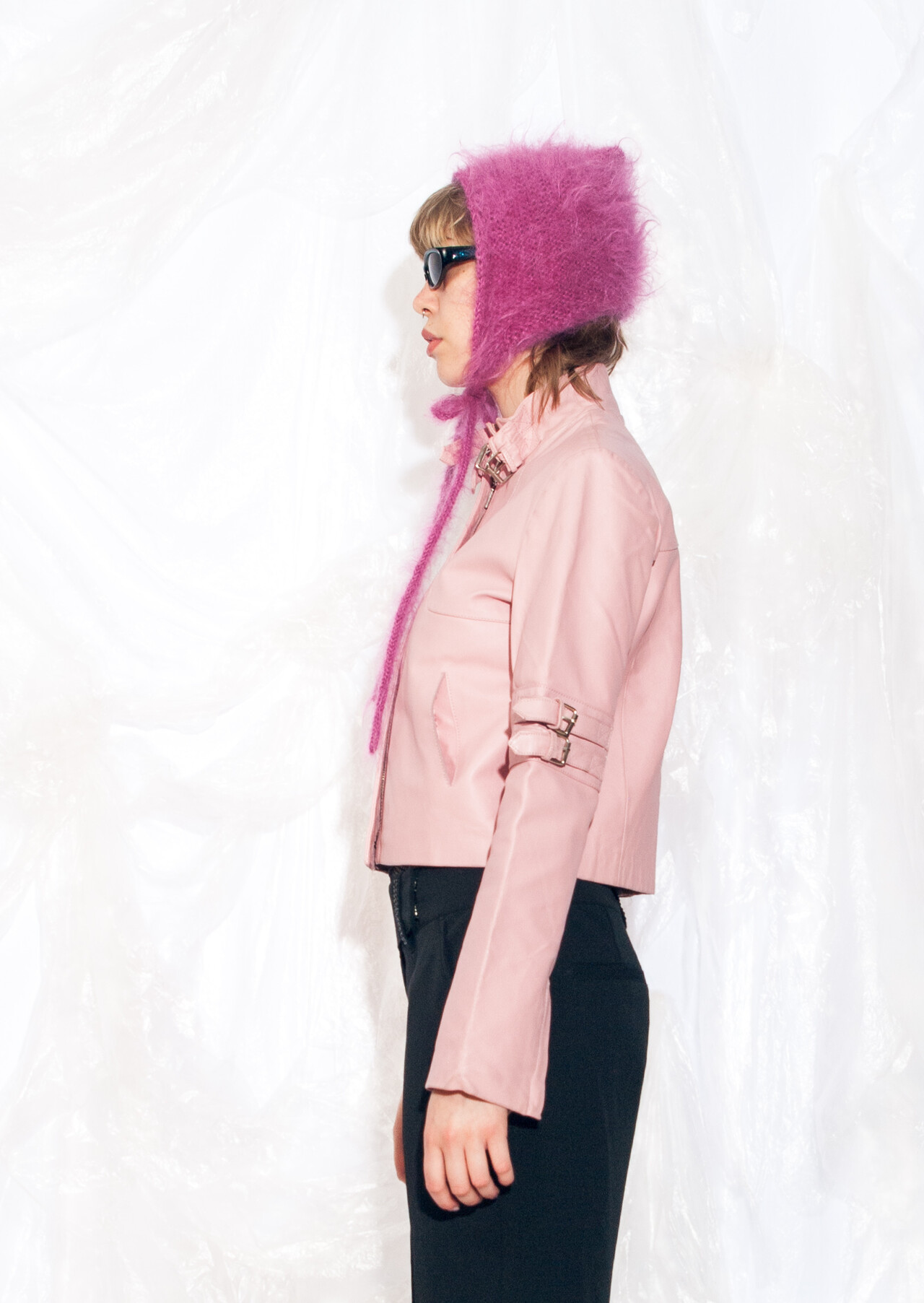 This pastel pink Y2K vintage real leather racing jacket will make you feel like you’re zooming through the early 2000s. It’s the coolest piece to add some speed to your style.