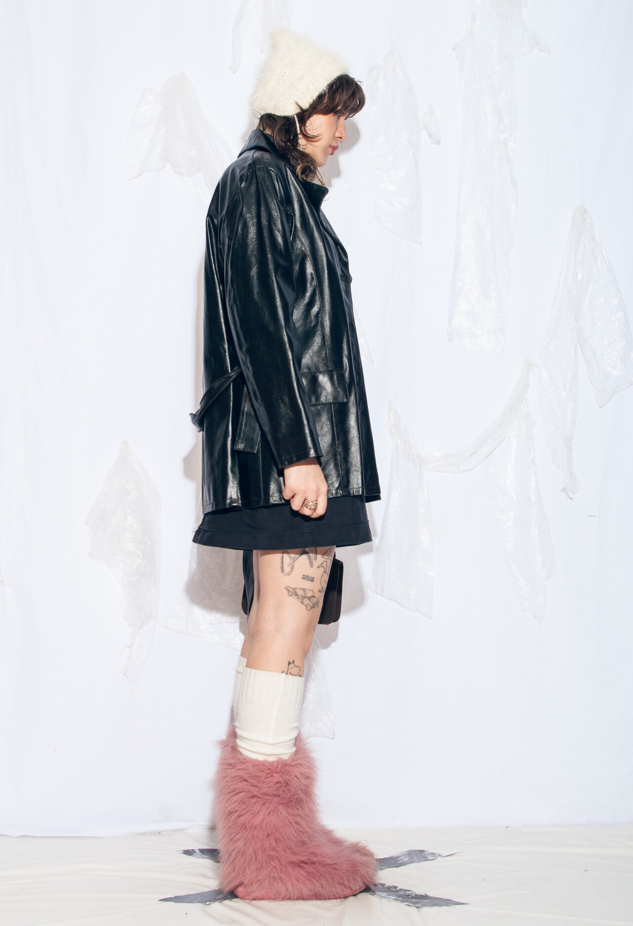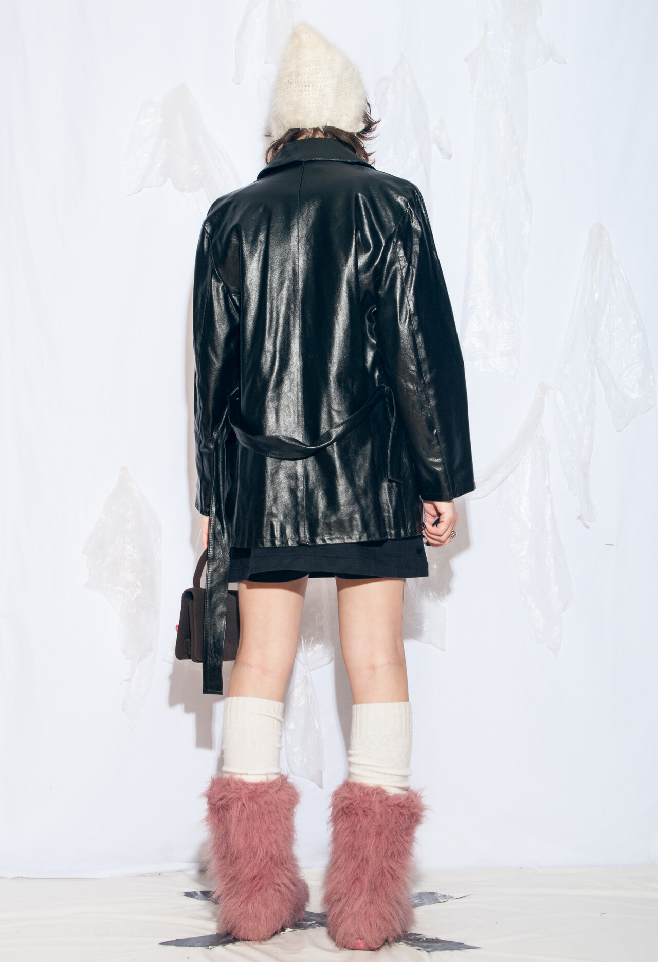 This Y2K vintage coat is like wrapping yourself in a leather time capsule that whispers ‘grunge’ with every swish.