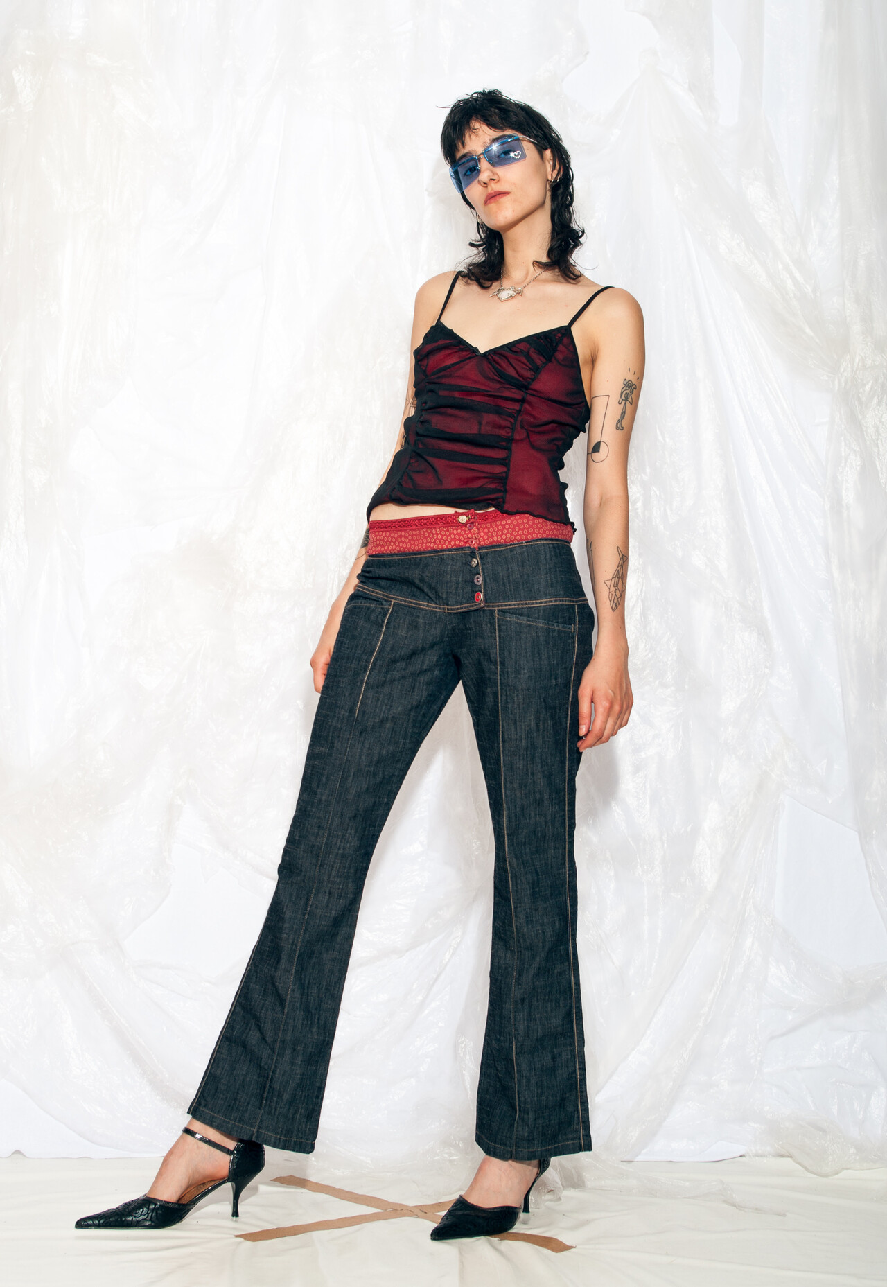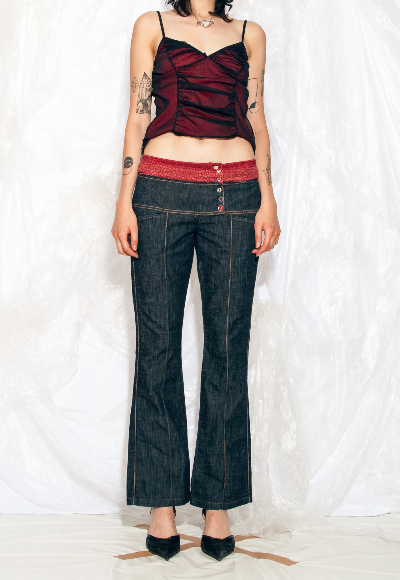 These Y2K vintage jeans by Marithe Francois Giraud are the perfect way to relive the days when low-rise pants and flares were the ultimate power couple.
