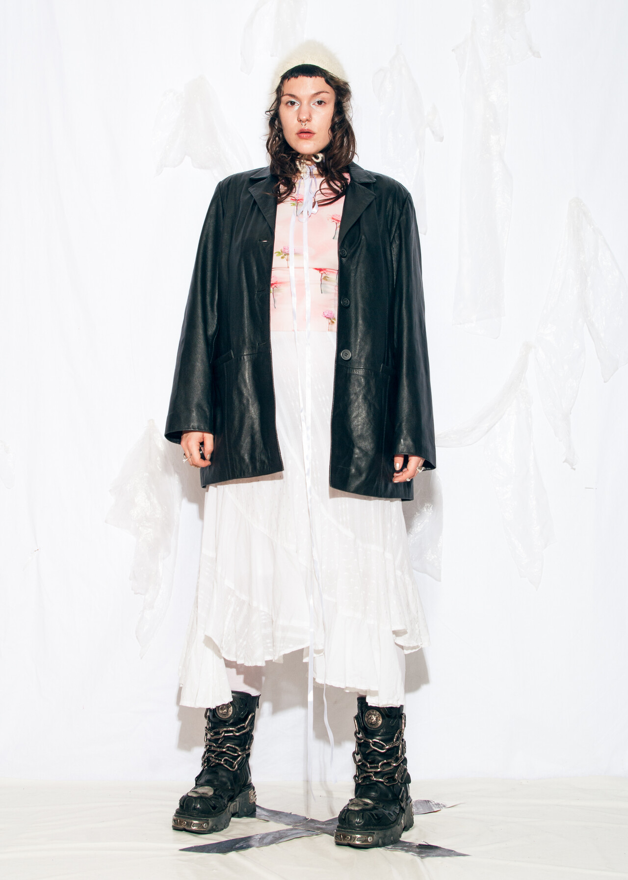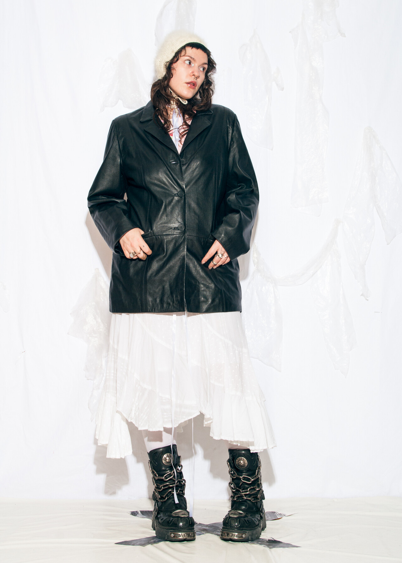 This Y2K vintage coat is the leather superhero cape for anyone ready to dodge raindrops like they’re in the Matrix!