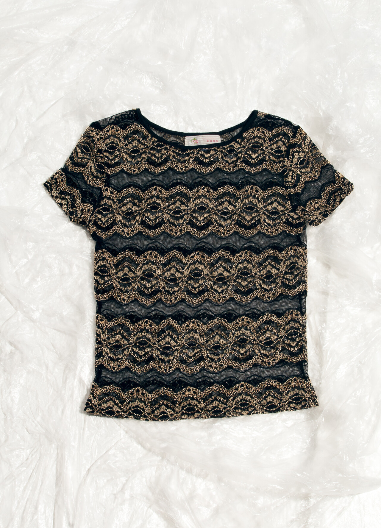 This Y2K vintage bronze mesh baby tee is a playful blast from the past. Rock this baroque-inspired gem and channel your inner 2000s pop star. It’s time to bring back the iconic fashion era, one top at a time.